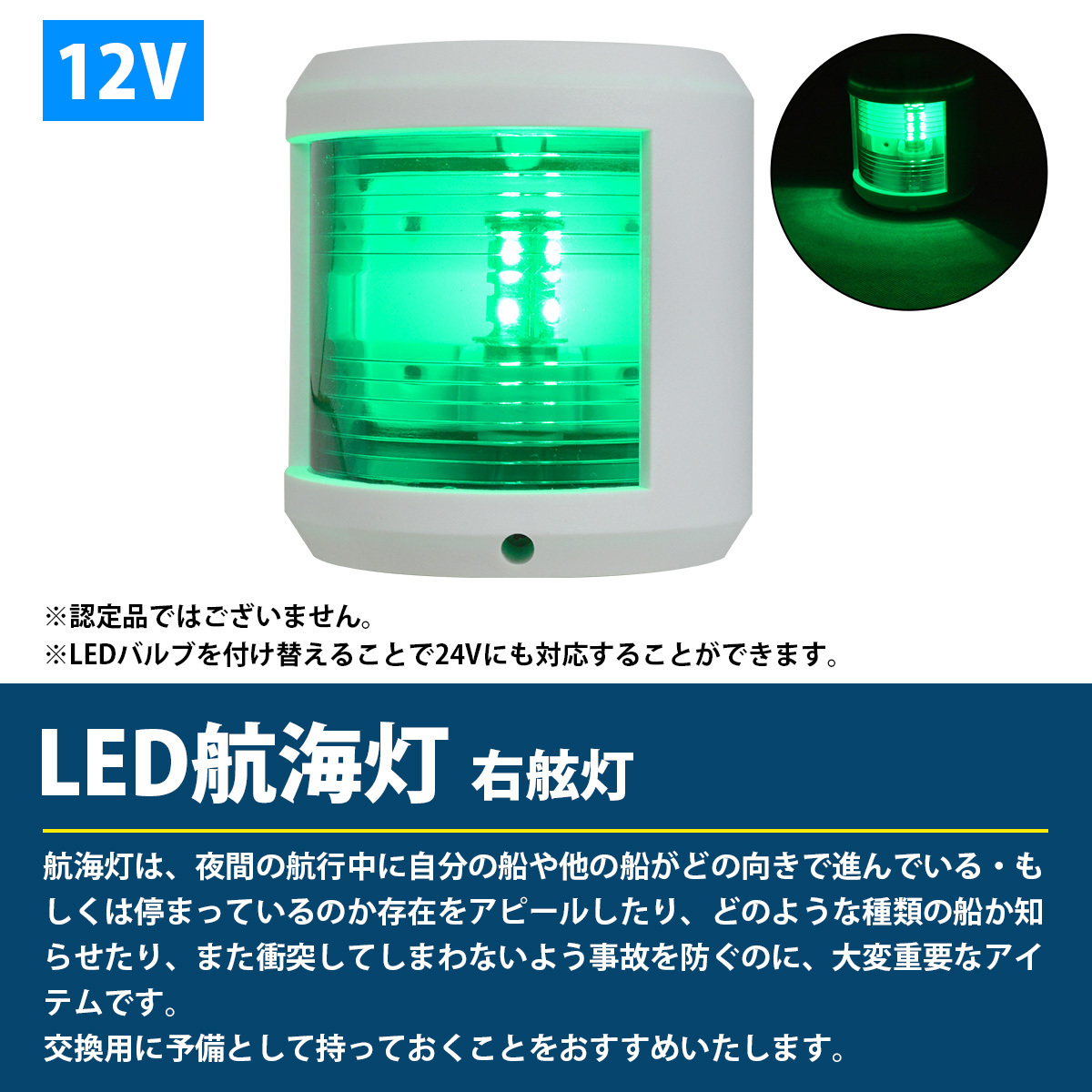 LED 航海灯 右舷灯 緑灯/右側 青信号 第二種舷灯 12V ボディカラー/ホワイト 白 ボート 船 船舶 ヨット (バルブ交換24V対応)