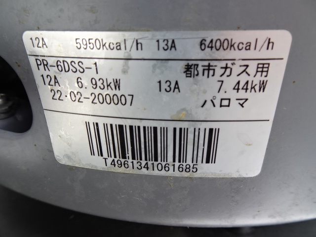 サイズ:W510×D420×H420mm 電源:都市ガス13A 重量:-kg 年式:2022年製 型式:PR-6DSS-1 保証:1週間 ●焦げ残り有ります。