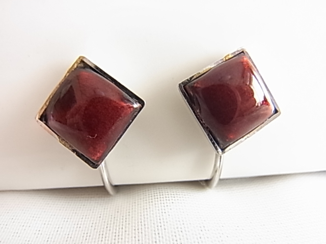 ビンテージ/ヴィンテージ パーシアンレッド ペルシア赤系のトーン 四角い形でも丸みがあり優しい雰囲気のデザイン レトロイヤリング☆