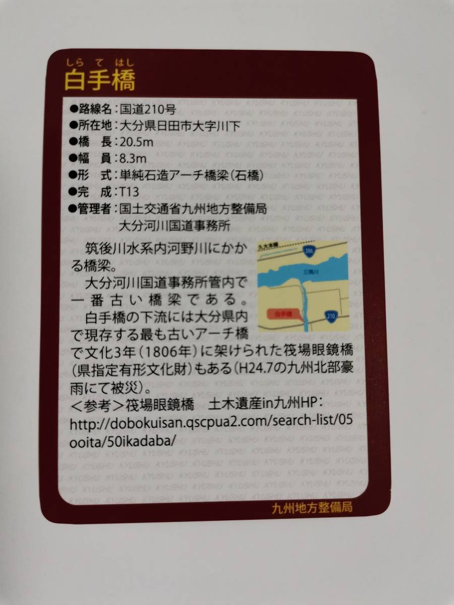 □♪九州 インフラカード 白手橋 大分県 日田市 九州地方整備局
