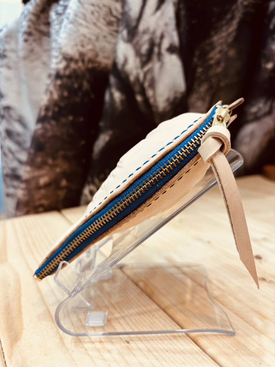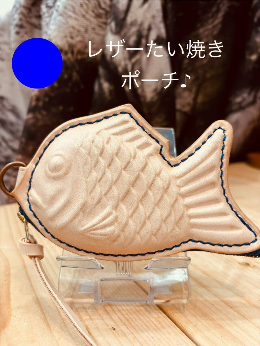 レザーたい焼きポーチ ブルー色 財布 小銭入れ 小物入れ ヌメ革 カラー15色以上あり 推しカラー