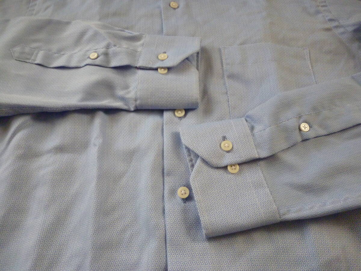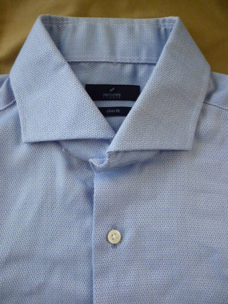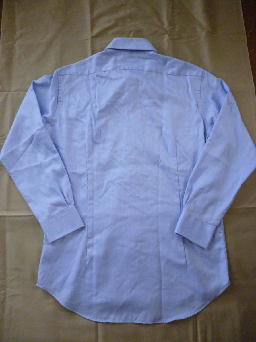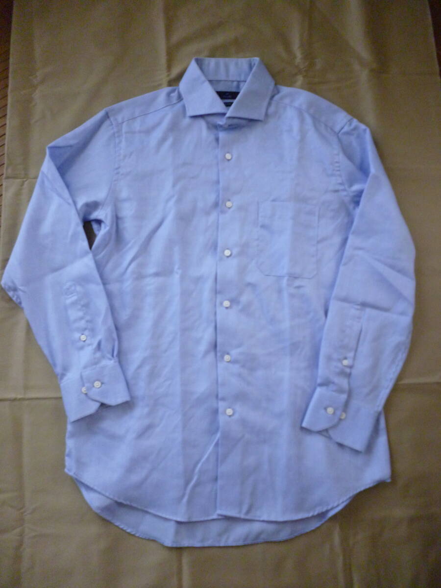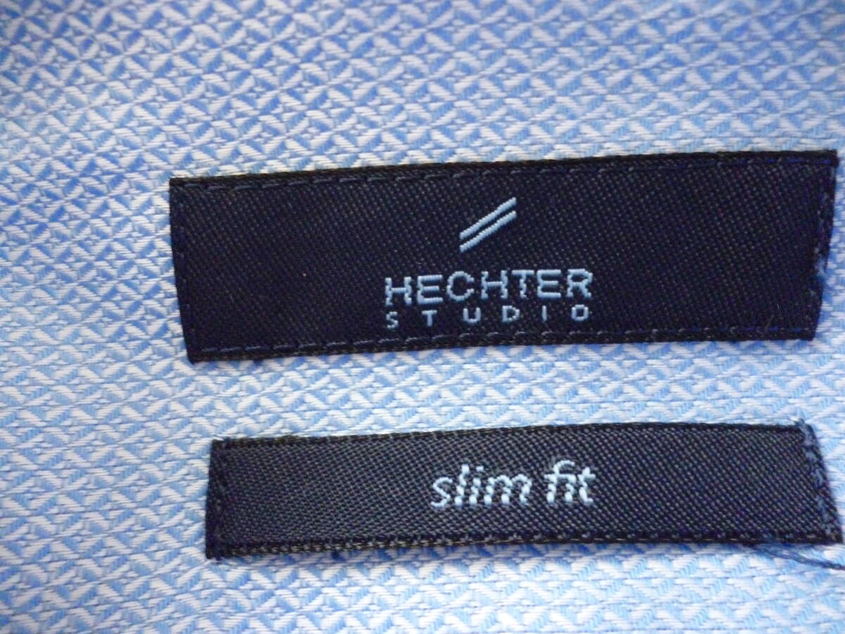 889-49♂:HECHTER STUDIO エシュテルスタジオ ワイドカラー 長袖 ドレスシャツ size.?slimfit 色.ブルー 山喜 バングラディシュ製