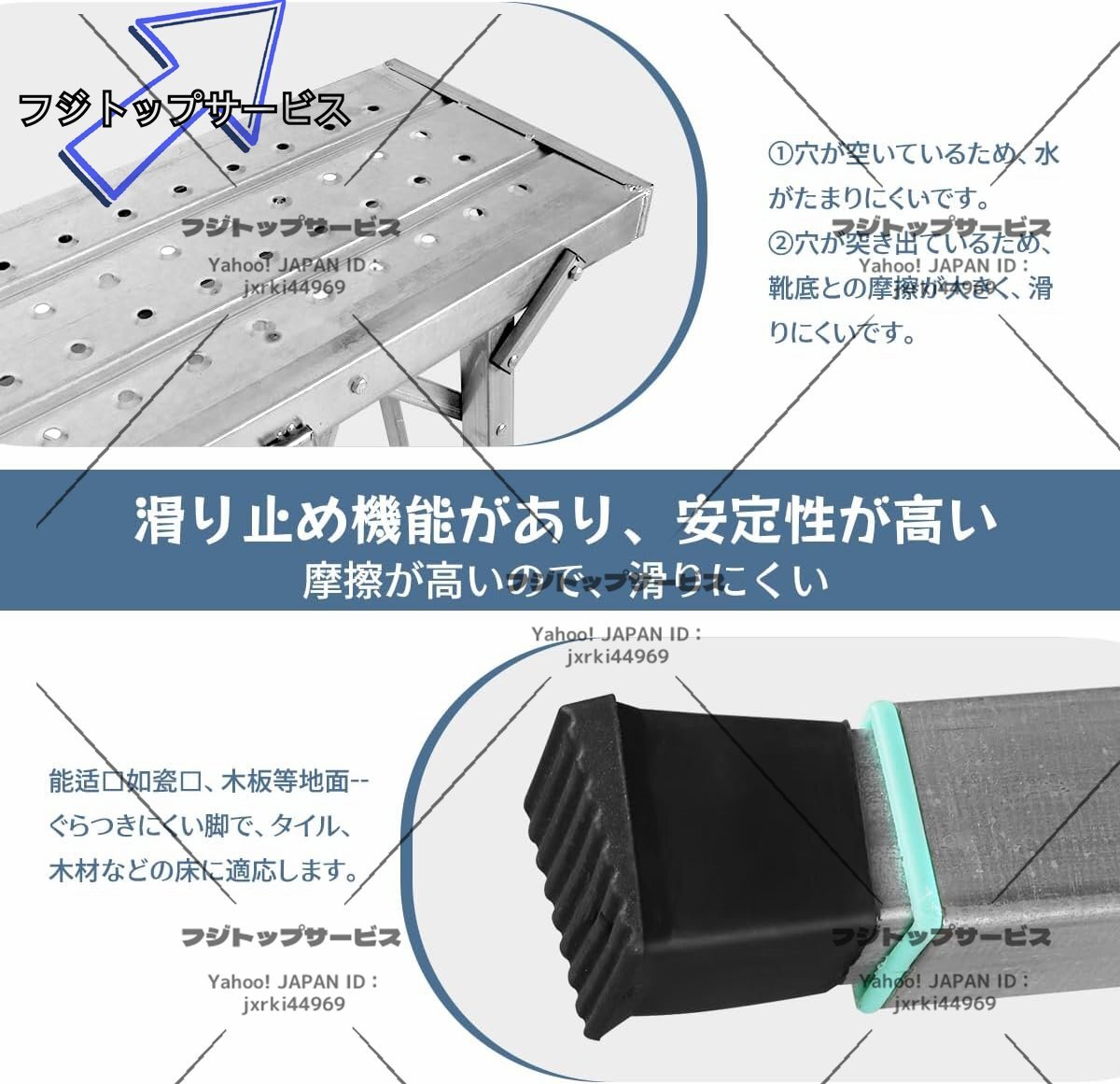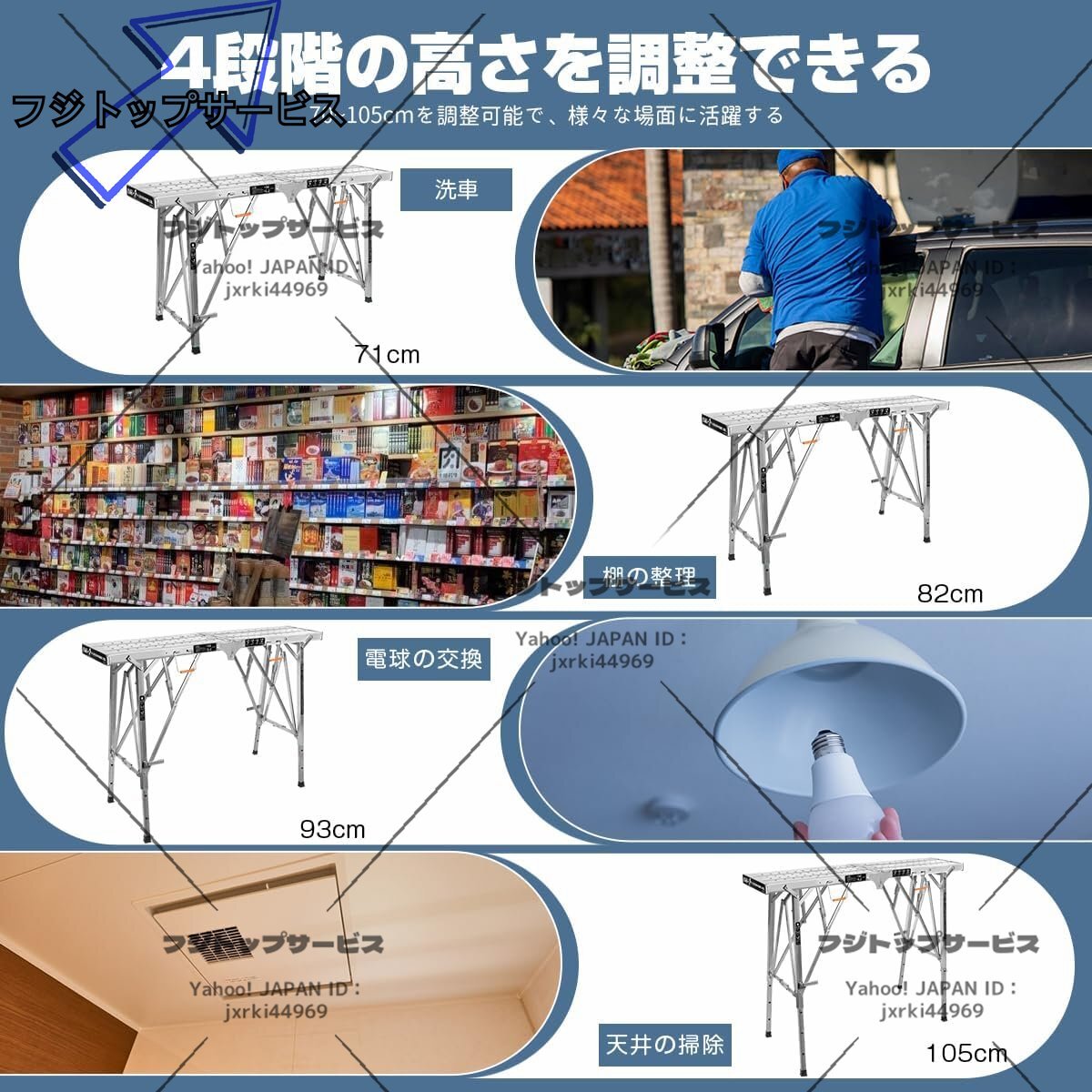 足場台 四脚アジャスト式立ち馬 洗車台 伸縮脚付作業台 踏み台 折りたたみ式 足置き台付き ドローストリング不要 耐荷重400kg 安定 安全