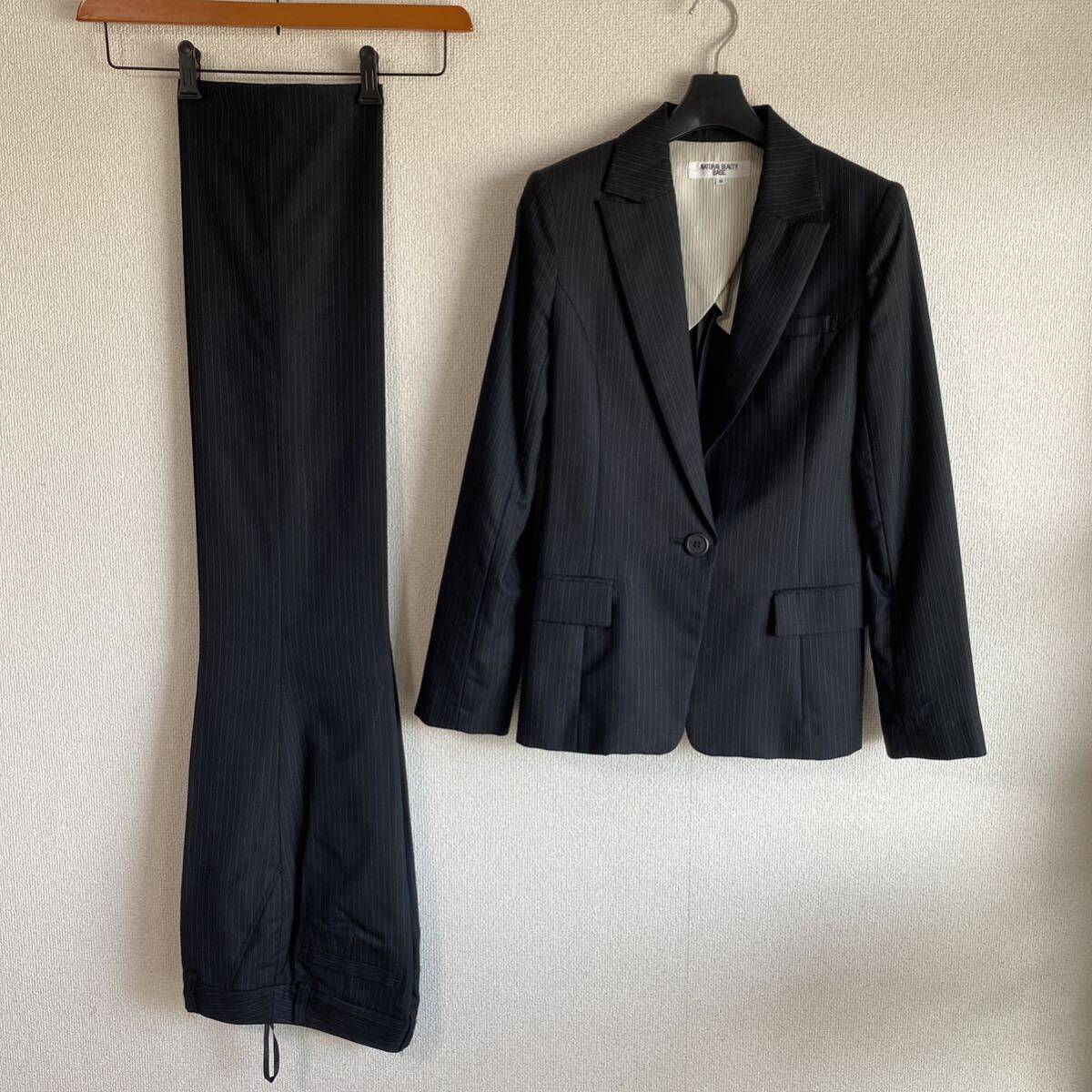 【極美】ナチュラルビューティーベーシック パンツスーツ 上M下XS W64 シルクDMW