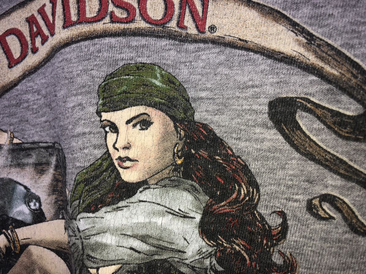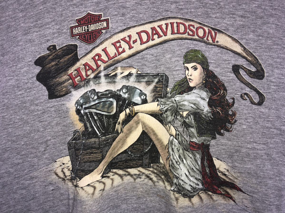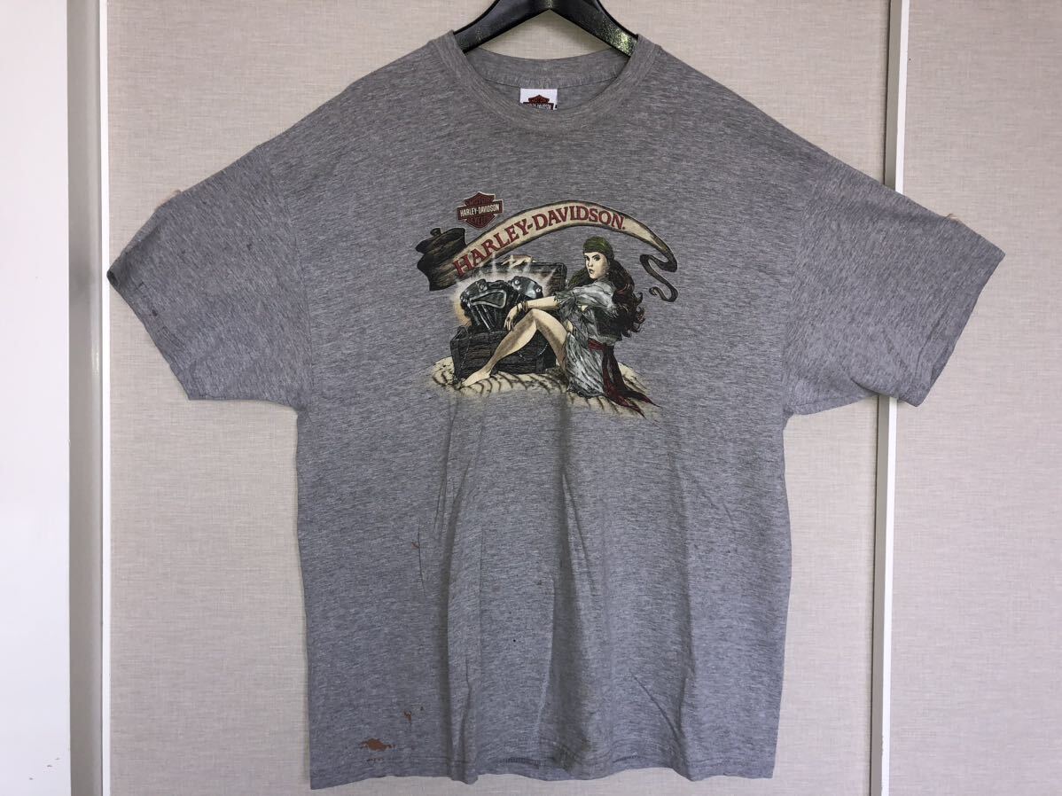 HARLEY DAVIDSON Tシャツ 半袖 サイズXL グレー ハーレーダビッドソン テキサス ナックルヘッド ビンテージ 海賊 ピンナップガールUSED古着