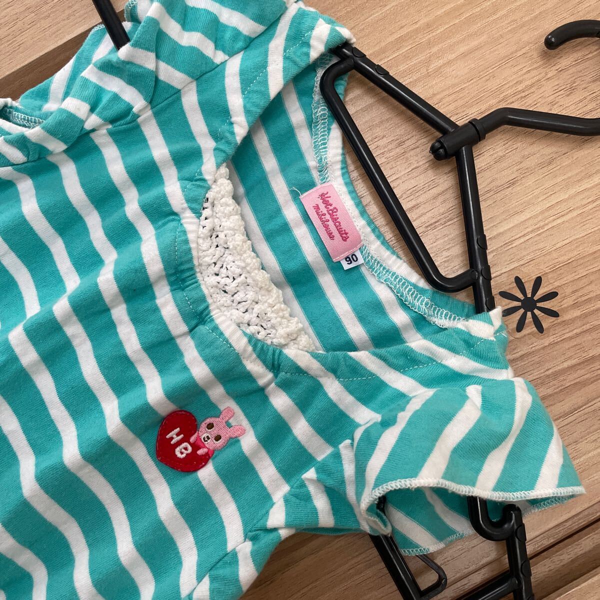 【送料込】700円スタート☆90ミキハウスMIKIHOUSEホットビスケッツボーダーチュニックワンピース記名なし子供服 女の子 ベビー