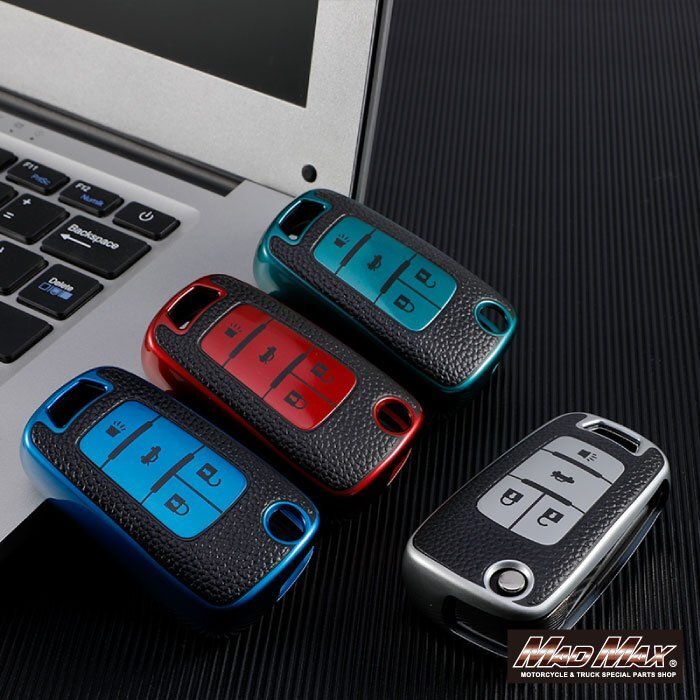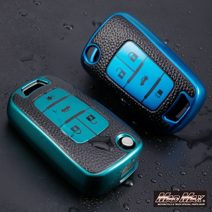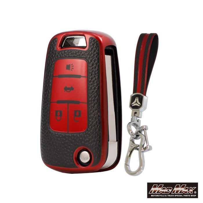 シボレー専用 レザー調 TYPE A 4ボタン式 TPUソフト スマートキーケース レッド。