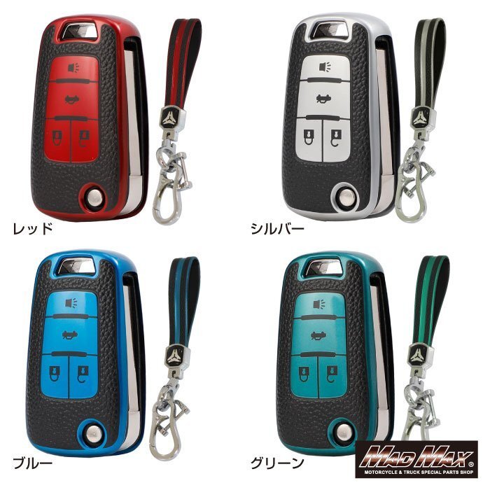 シボレー専用 レザー調 TYPE A 4ボタン式 TPUソフト スマートキーケース レッド