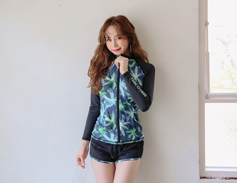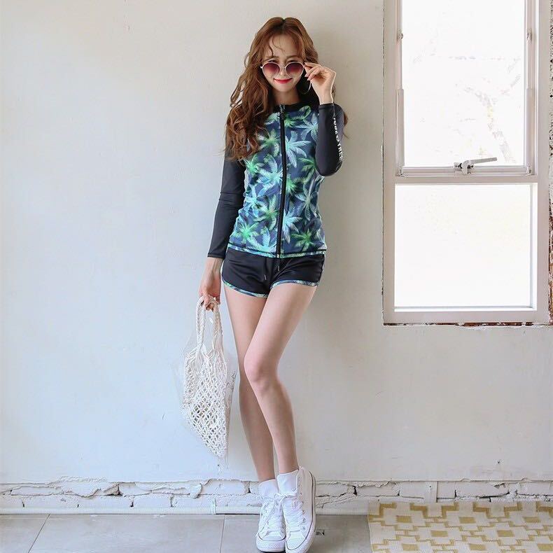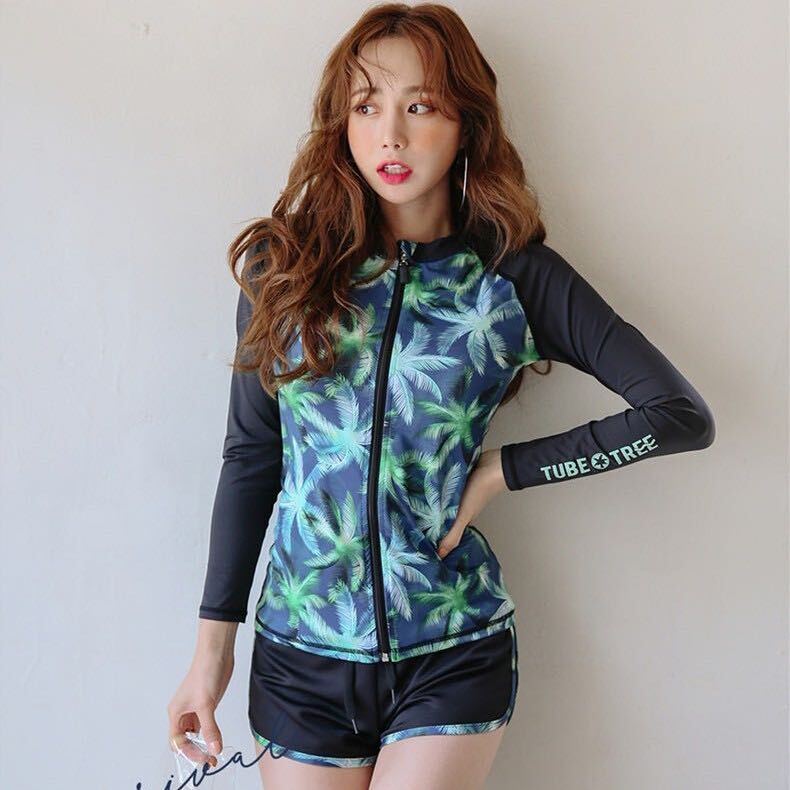水着 レディース 上下セット 前開き 韓国風 スポーツ 長袖水着