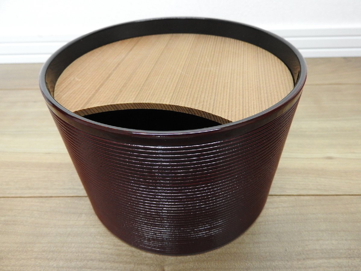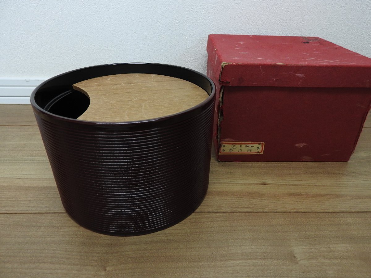 茶道具 茶巾落とし 茶巾箱 切立形 漆器 木製になります。 保管期間ございますが、比較的綺麗な状態かと思います。 外箱 保管による傷み(ダメージ)シール貼り付けございます。 【サイズ】 直径 13.5㎝ 高さ 9㎝ 写っているものが全てです。 状態も含めて写真にてご確認下さい。 | ||||