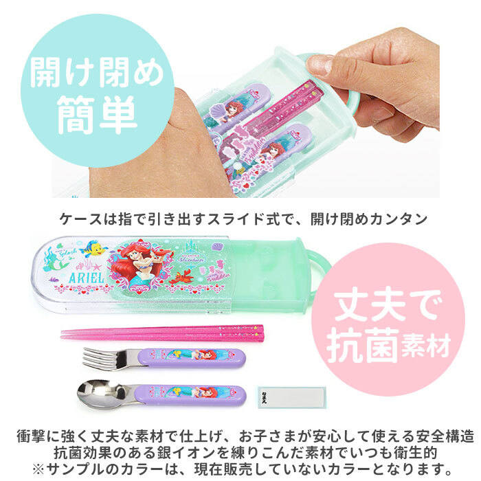 商品説明 | ・・人気キャラクターの絵柄がかわいい!食洗機対応のキッズ向け、お箸・フォーク・スプーンとケースのトリオセット。安心の日本製。 ・ケースは指で引き出すスライド式で、開け閉めカンタン。衝撃に強く丈夫な素材で仕上げ、お子さまが安心して使える安全構造。 ・ケース内部にはお箸・スプーン・フォーク、それぞれの形にスペースが区切られているので、お子さまご自身で出し入れがしやすいつくり。 ・お箸の先端にはすべり止め加工が施され、おかずやごはんがしっかり挟めて食べやすい♪ ・お箸にはお名前が記入できるスペースに、ケース用にもお名前シールが付属。お友だちのセットと取り違える心配がないのも嬉しいポイント。 ・食洗機対応で、お手入れもラクラク。ケースは分解できて洗いやすい。 ・フォークとスプーンも入っているので、まだお箸の使えない小さなお子さまにも安心して使える♪ ・抗菌効果のある銀イオンを練りこんだ素材を使用しているから、いつも衛生的。(※抗菌加工を施しておりますが、すべての細菌の増殖を抑制するものではありません。) ・幼稚園や保育園のお弁当の時間はもちろん、遠足やピクニックなどでも大活躍♪ |