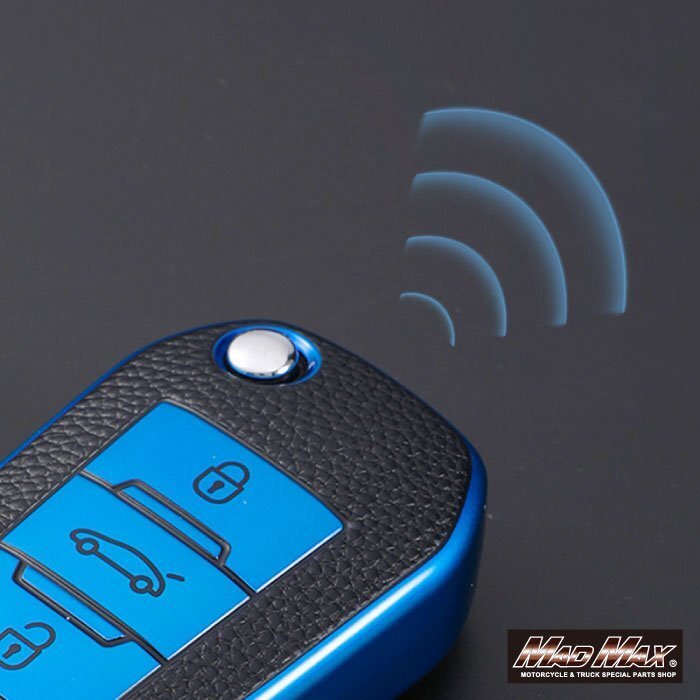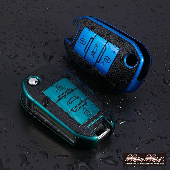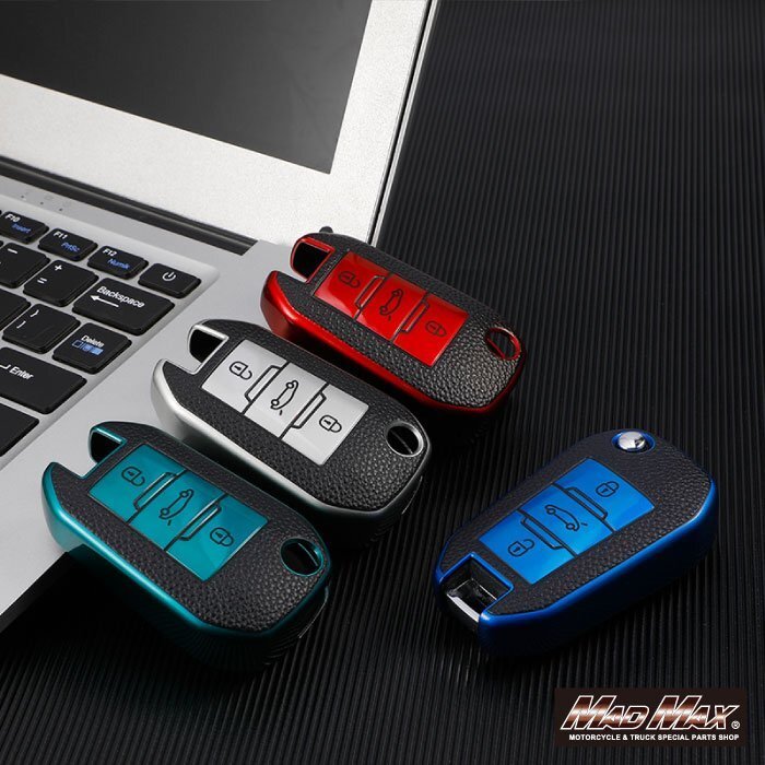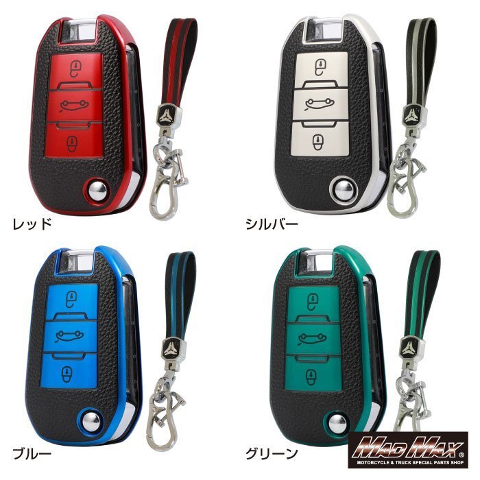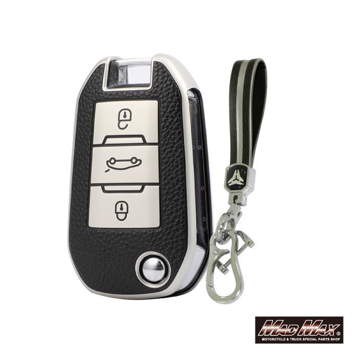 プジョー専用 レザー調 TYPE C 3ボタン式 TPUソフト スマートキーケース シルバー。