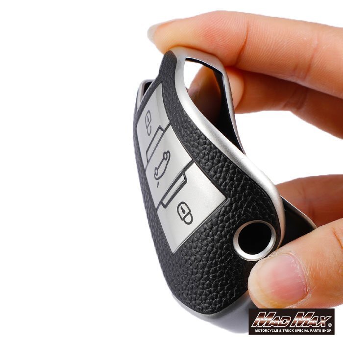 プジョー専用 レザー調 TYPE C 3ボタン式 TPUソフト スマートキーケース シルバー