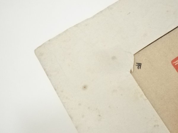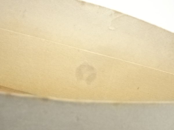 本紙に薄いシミがあり、裏面の糊に剥離があります。台紙に若干シミがあります。その他には問題はなく、まだまだ使用可能な状態です。