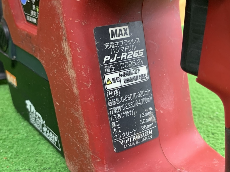 ※3.0Ahバッテリ2点付き(本来は4.0Ahバッテリ、変更されています) ※満充電時バッテリは「28.2V」「28.6V」を指しています ※動作時、まれに瞬間的に回転数が落ちることがあります(ムラあり) 【仕様】 ・連続作業量目安(1充電):穴あけコンクリート(φ12.5×30mm)約100本 ・穴あけ能力(mm):コンクリート26mm、鉄工13mm、木工30 ・無負荷回転数(min(の-1乗))弱:0~560 ・無負荷回転数(min(の-1乗))通常:0~920 ・打撃数(min(の-1乗))弱:0~2860 ・打撃数(min(の-1乗))通常:0~4700 ※上記情報はあくまでも参考値となります。 ※中古品の為 100%の性能の保証はできかねます。 動作確認済みです。 中古品になりますので キズ・汚れ等がございます。 画像の物が全てになります。 他に付属品等はございません。 上記のことを ご理解・ご了承の上で ご入札を お願い致します。 その他 ご不明な点等ございましたら ご入札前に お気軽に ご質問下さい。 オークション終了日 当日は 午後5時迄に ご質問は お願い致します。 夕方以降に ご質問等 お問い合わせ頂きましても お応えするのが 翌営業時間中になりますので ご了承ください。 *詳細につきまして ご質問されましても お答えできない場合もございます。 | ||||