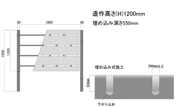 大津垣O型 | 大津垣は丸竹を縦に1本ずつ編み込むタイプです。風通りの良さが特徴です。 |