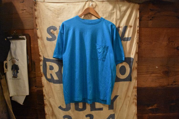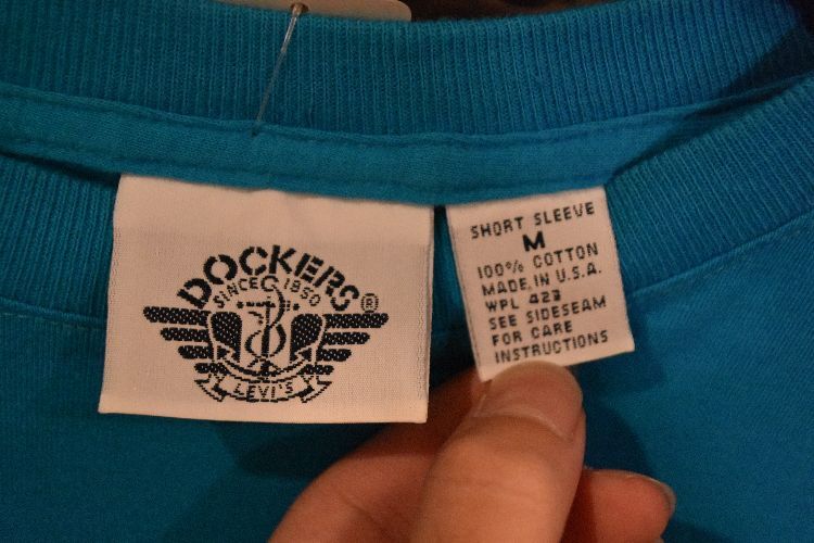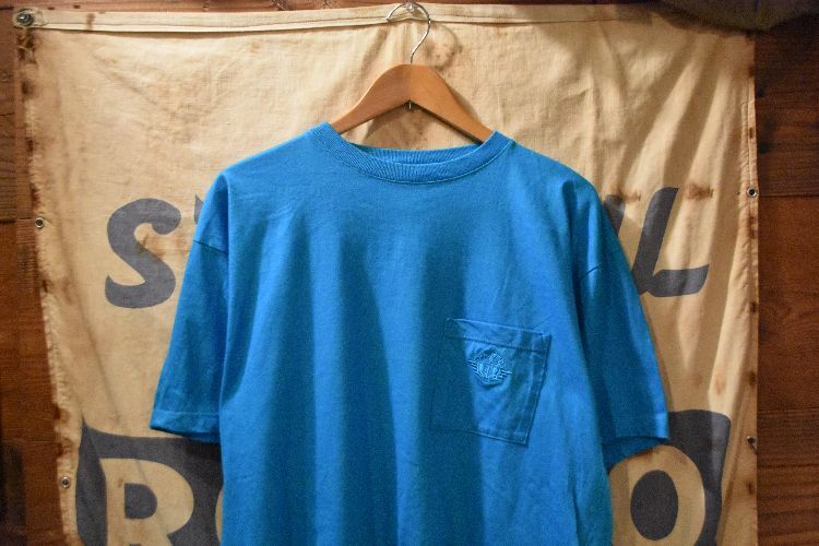 グッドカラーアイテム◎USA製ビンテージLevi'sリーバイスDOCKERSドッカーズ半袖無地ポケットTシャツMブルー青系アメリカ製アメカジn25081