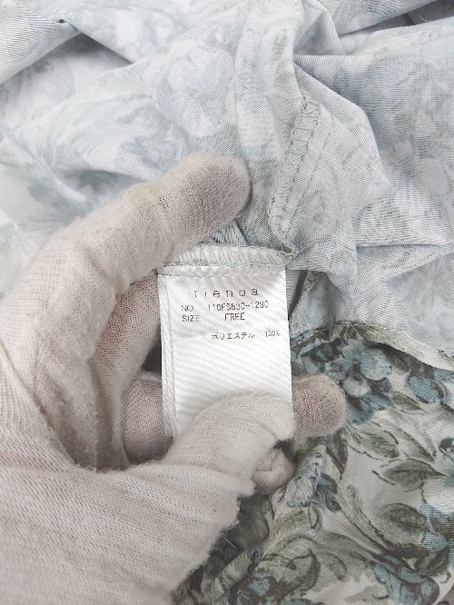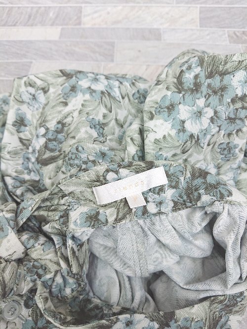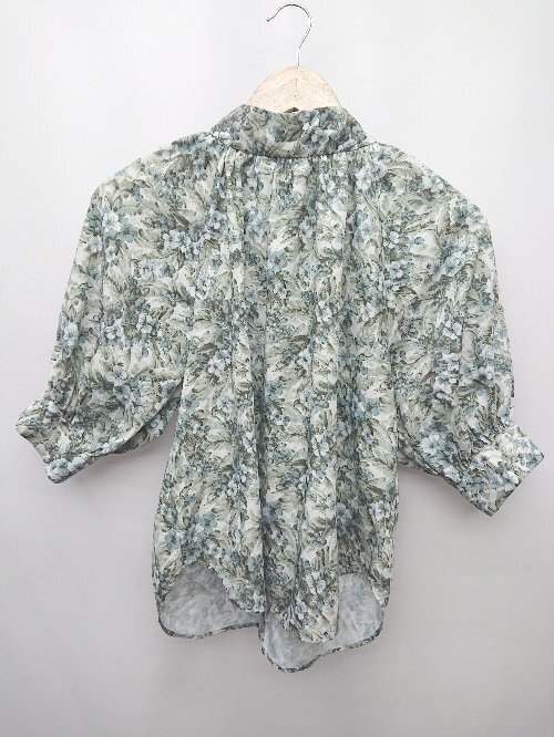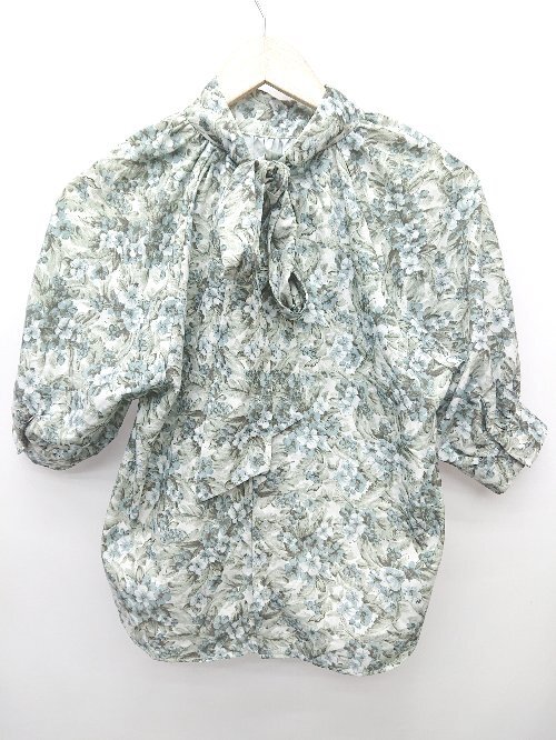 ◇ rienda リエンダ 総柄 五分袖 ブラウス カットソー サイズF グリーン系 マルチ レディース P