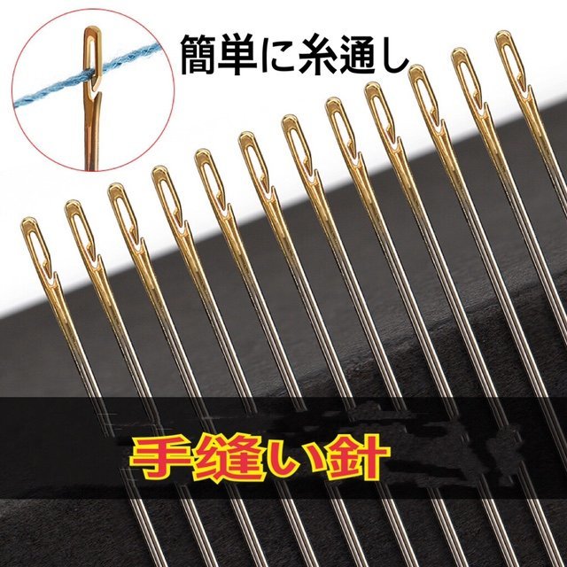 12本セット 手縫い針 ワンタッチ糸通し 簡単糸通し仕様 縫針 老眼