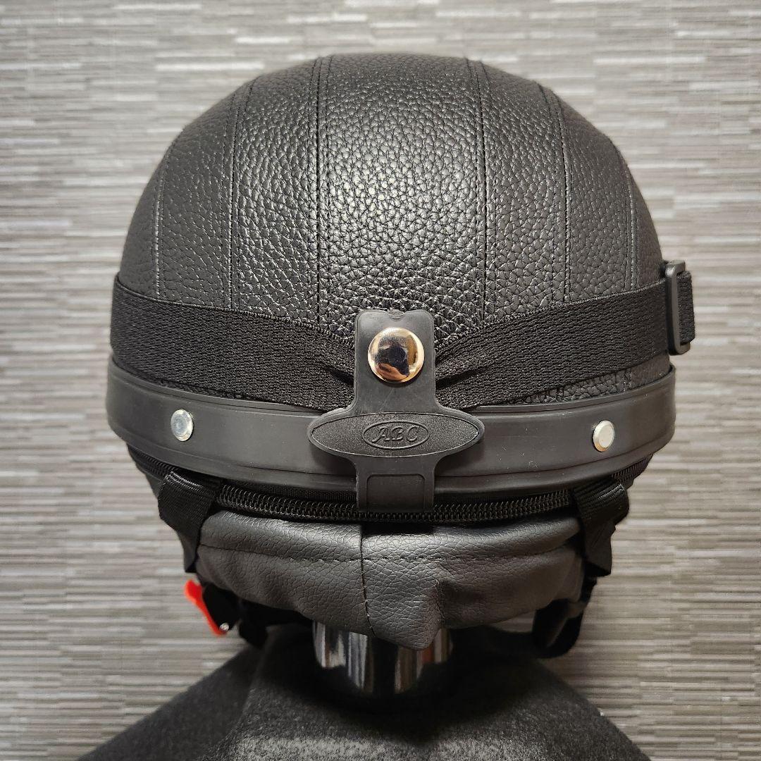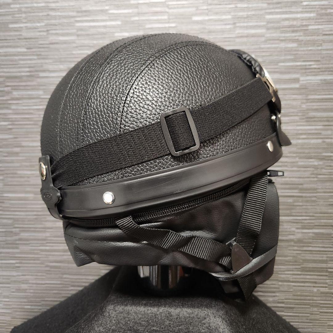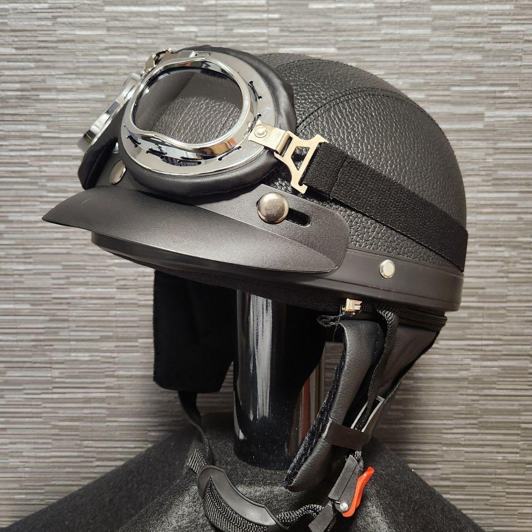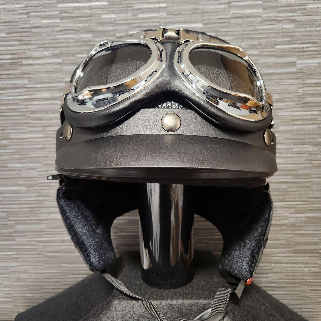 ヴィンテージ感漂うゴーグル付きレザーヘルメットレザー調ブラックです。