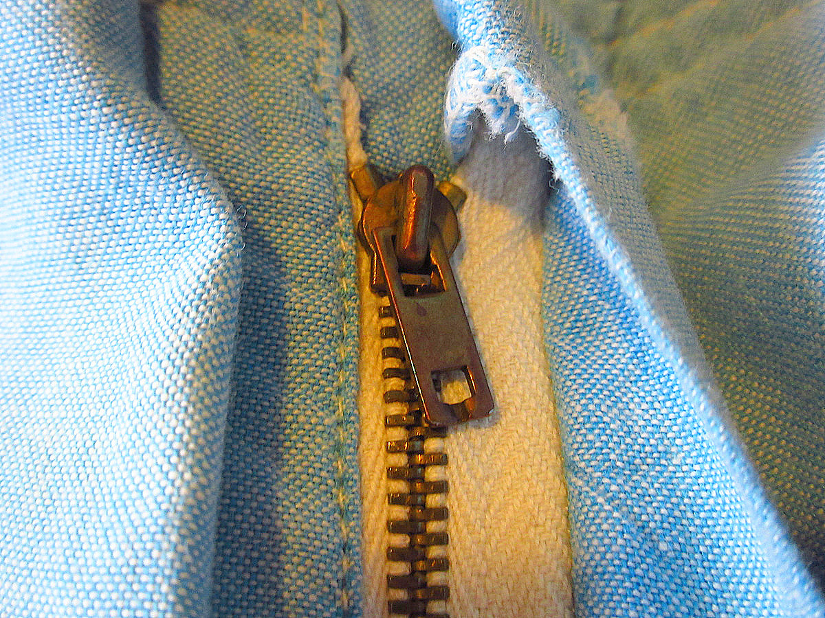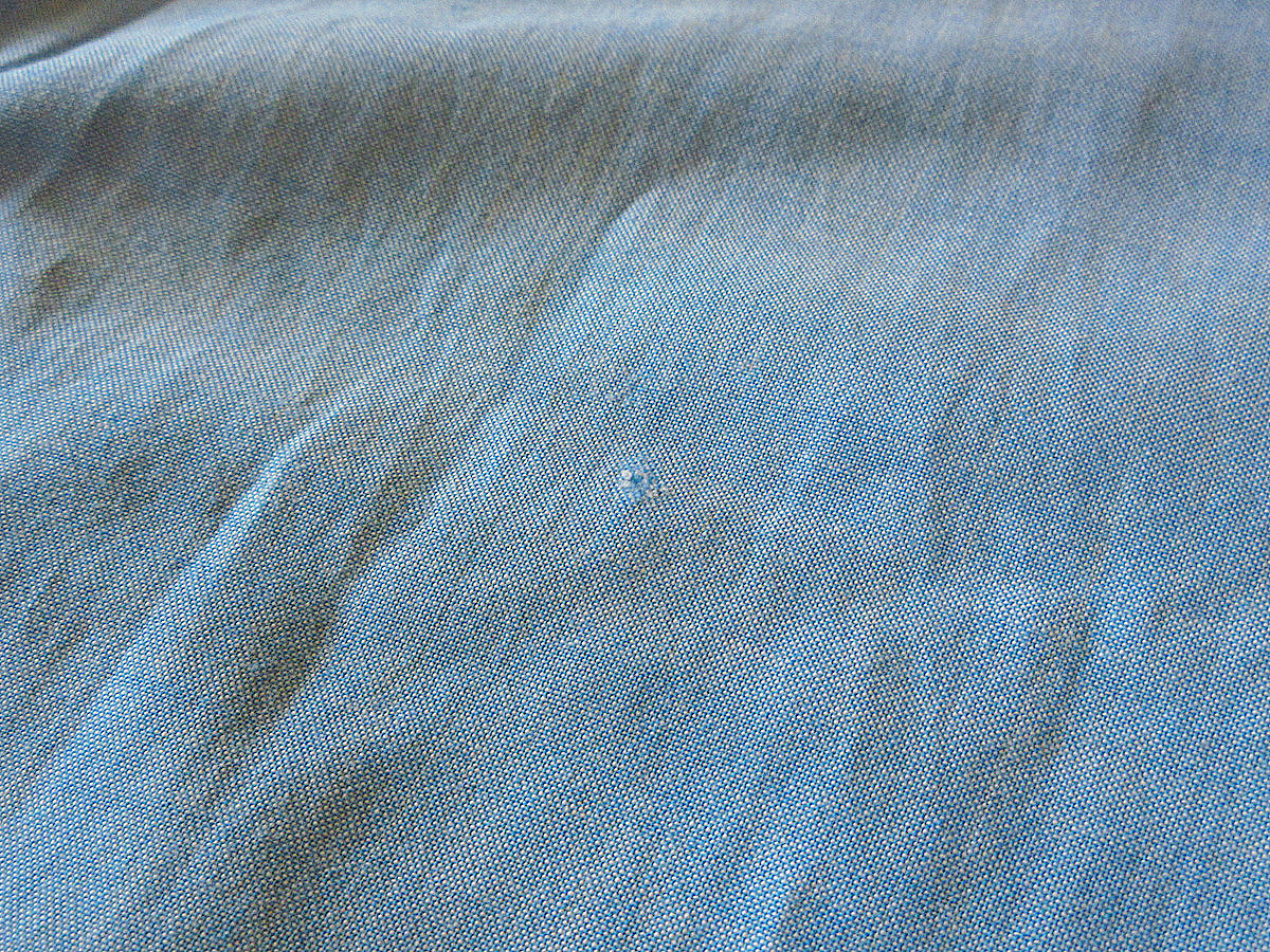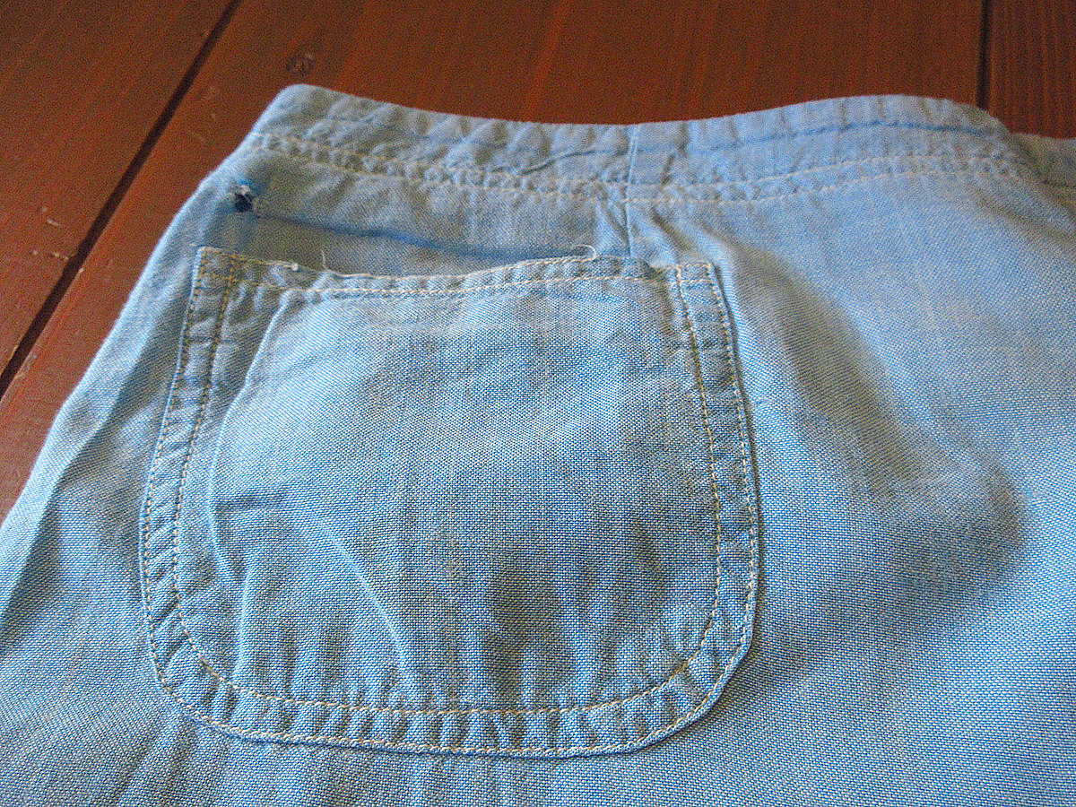 点々と汚れやシミあり、タグが取れかかっています。ステッチのホツレている箇所あり