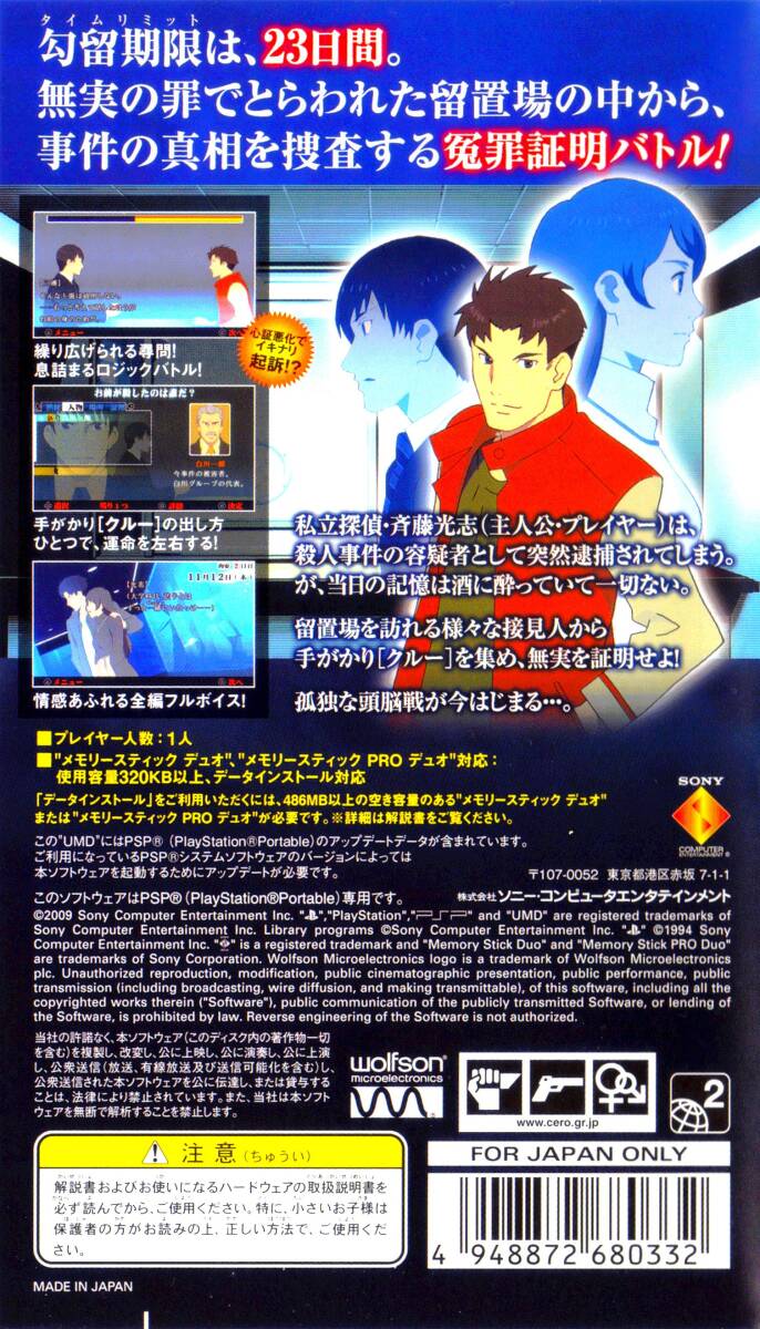 留置場内から推理して無実を立証し、事件の真相を探る。思考型エンターテイメントゲームです。