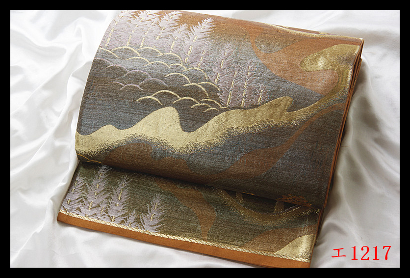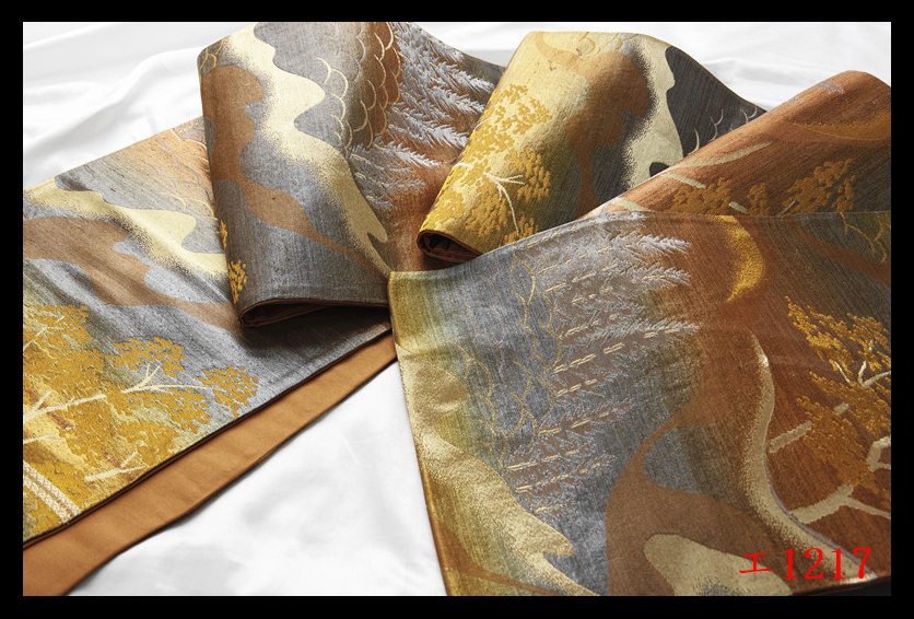 A【エ1217】西陣美品 黄土色地 気品豊かに 正絹純金糸六通高級美術袋帯 検★着物名古屋帯和装小物帯締め