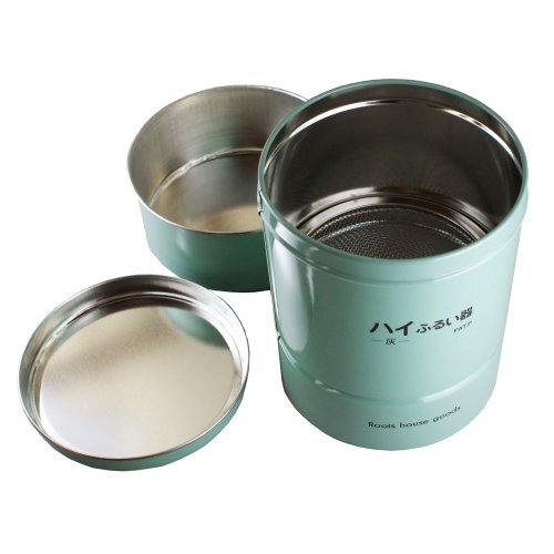 「灰ふるい 日々の灰のお手入れに、飛び散らない灰ふるい」▼▼(商品説明)直径11.3センチ高さ14.3センチ・飛び散らないようにフタ付き・網の部分が凸型になっているので、軽くふるって灰が落ちます。