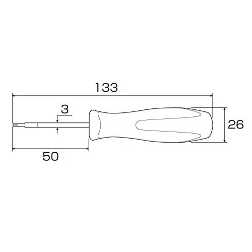 「アネックス(ANEX) ドライバー ヘクスローブ T6x50 穴付 No.6300」▼4962485020415▼(商品説明)1本・ブラック T6(穴あり) No.6300・・Size:T6(穴あり)・規格:T6×50・先端径:1.7mm・軸長:50mm・軸径:3mm・全長:133mm説明 商品紹介 ●トルク伝達率が高いヘクスローブ(6つ溝)ネジ用ドライバー ●ハンドルは四角に近い断面形状で力をかけやすい ●先端サイズ:T6(1.7mm)、穴あり ●製品寸法:全長133mm、軸長50mm、軸径3mm、ハンドル最大径26mm ●マグネット:なし ●包装形態:フック付 より ●ヘクスローブ付ネジ部品と締め付け工具は、軸に平行な側面ではまり合うため、締め付け時の滑り及び工具の外れ(カムアウト)がなく、確実な締め付けができる ●広い面で理想的な角度でトルクが伝達されるため、トルク伝達に付随したネジ部品の形状のくずれがない ●同様の理由から締め付け工具の割れや磨耗が少なく、工具の寿命が著しく伸びる ●ドライバーの先端部をメッキ層の厚みの影響を受けない高精度仕様に仕上た ●理想的なネジとのカン合により耐久性を大幅アップ