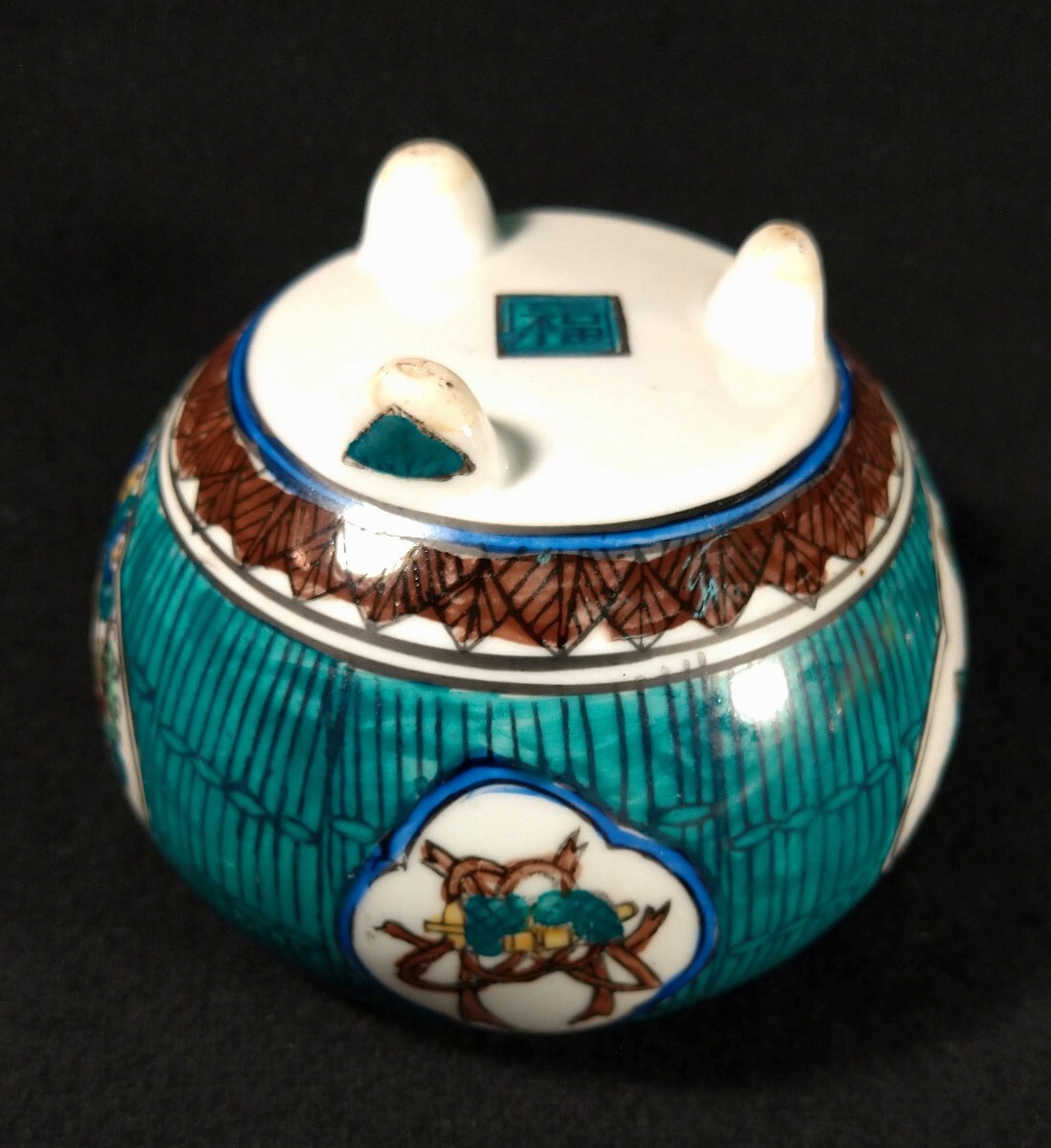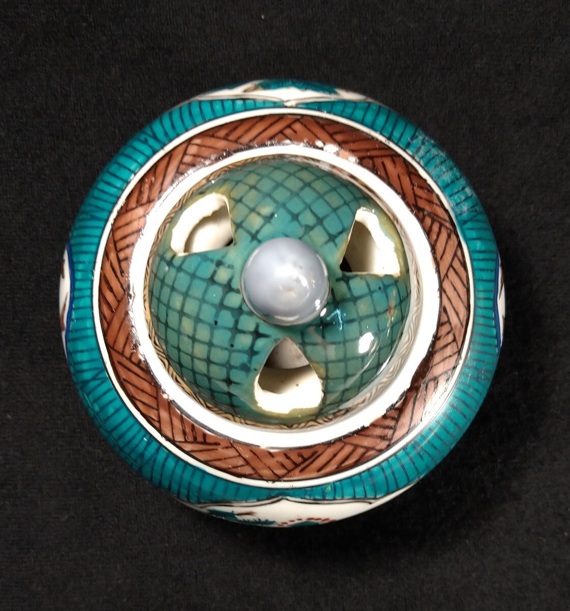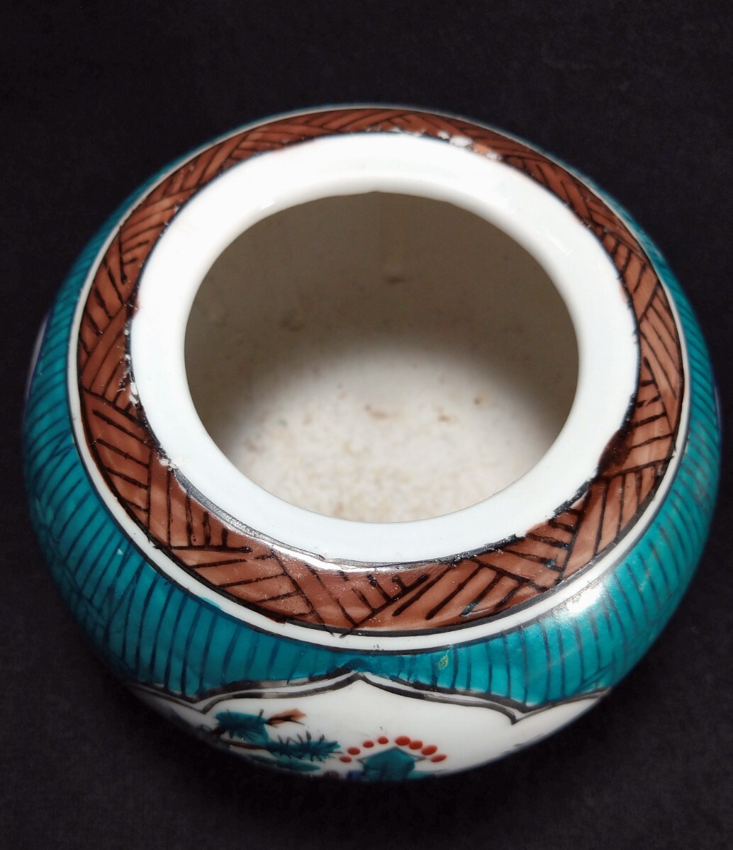 山水に花文が描かれた美しい香炉でございます。素人採寸で申し訳ございませんが、径11.5cm、高さ13.8cmでございます。