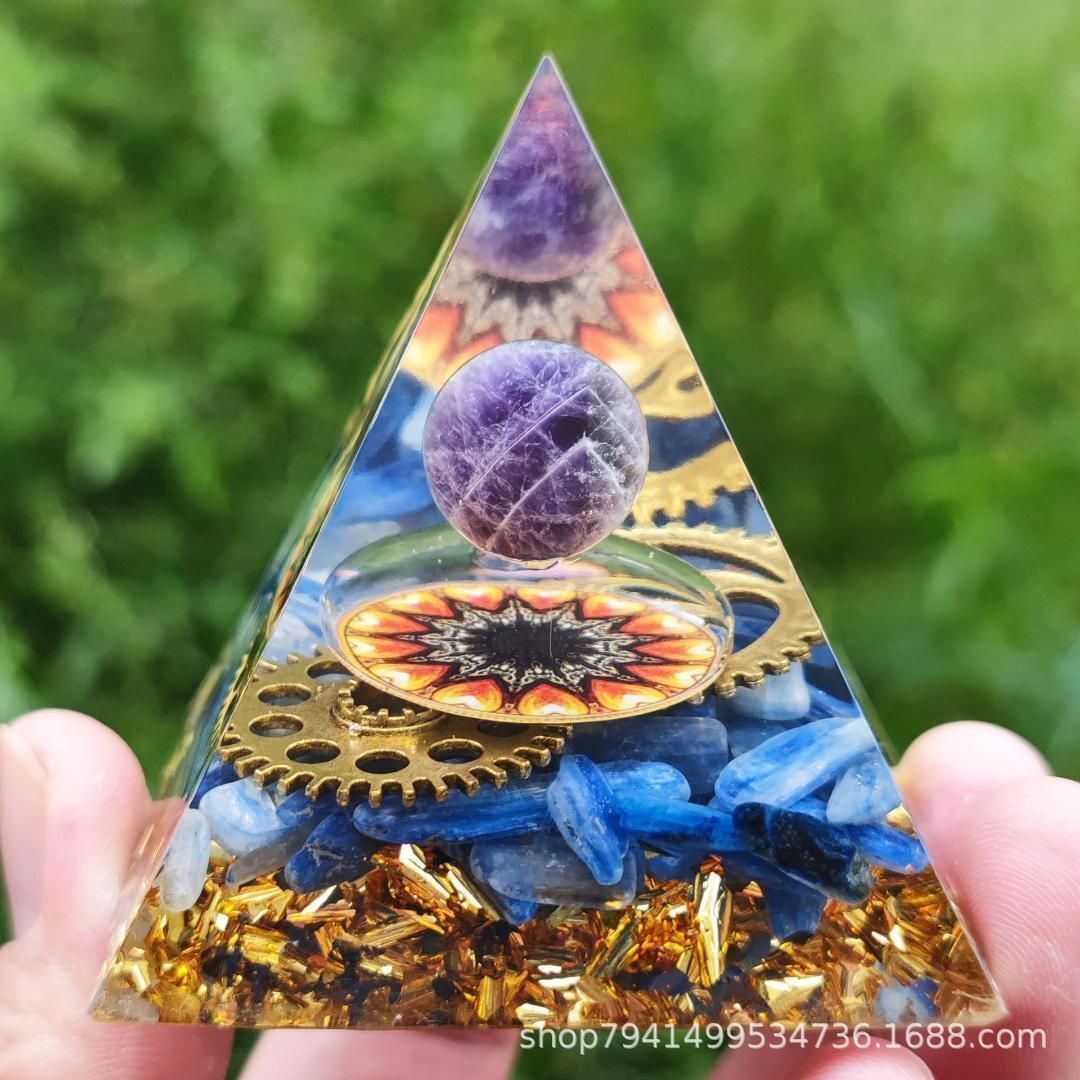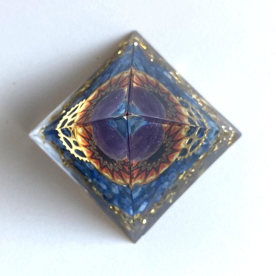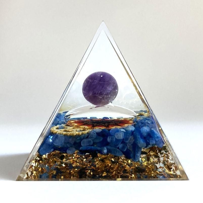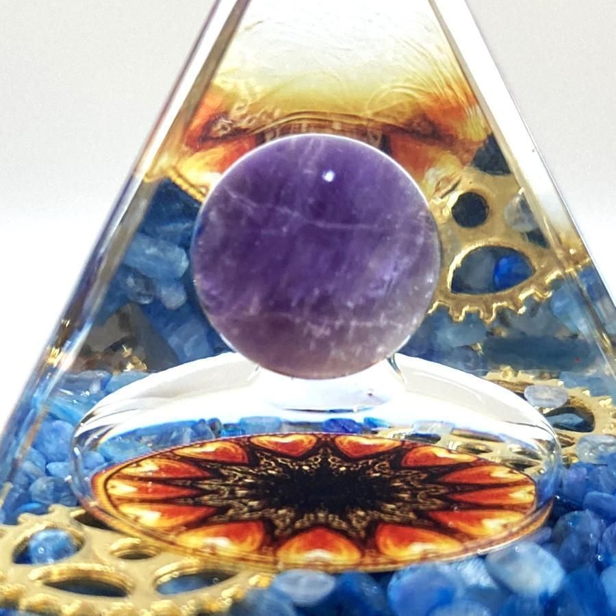【商品名】G052 オルゴナイト ピラミッド型 アメジスト カイヤナイト 置物 インテリア 浄化