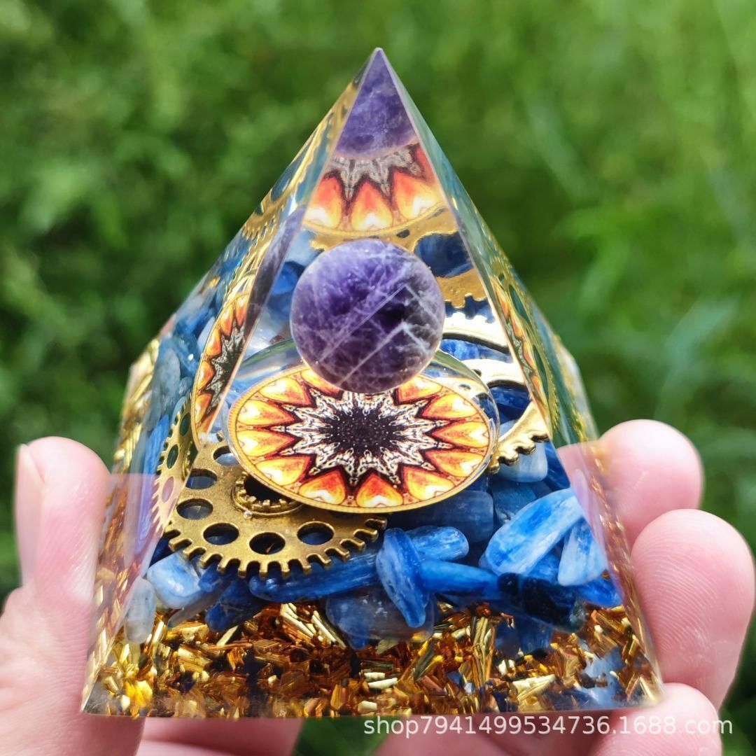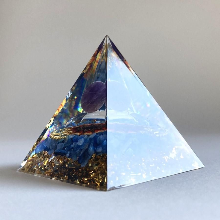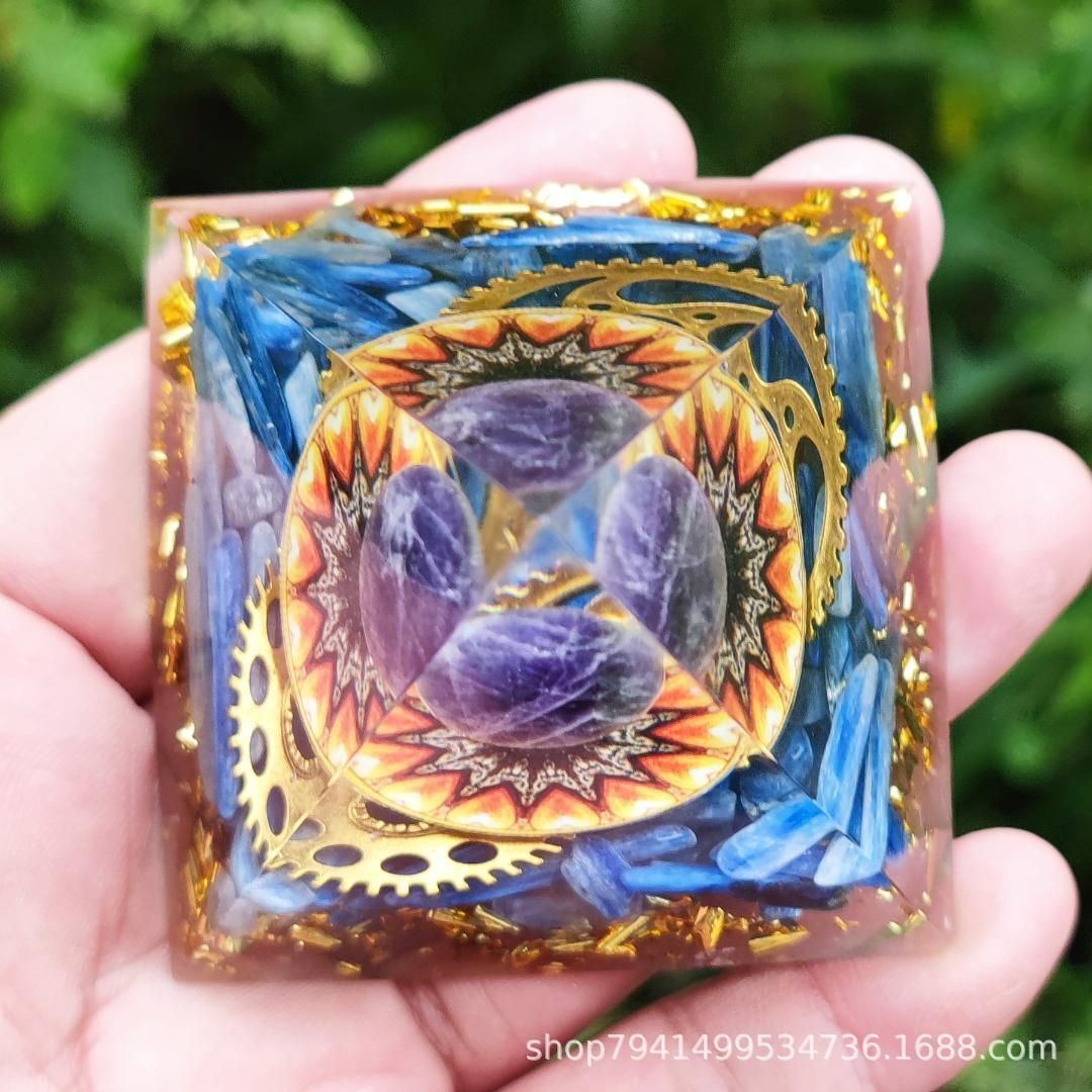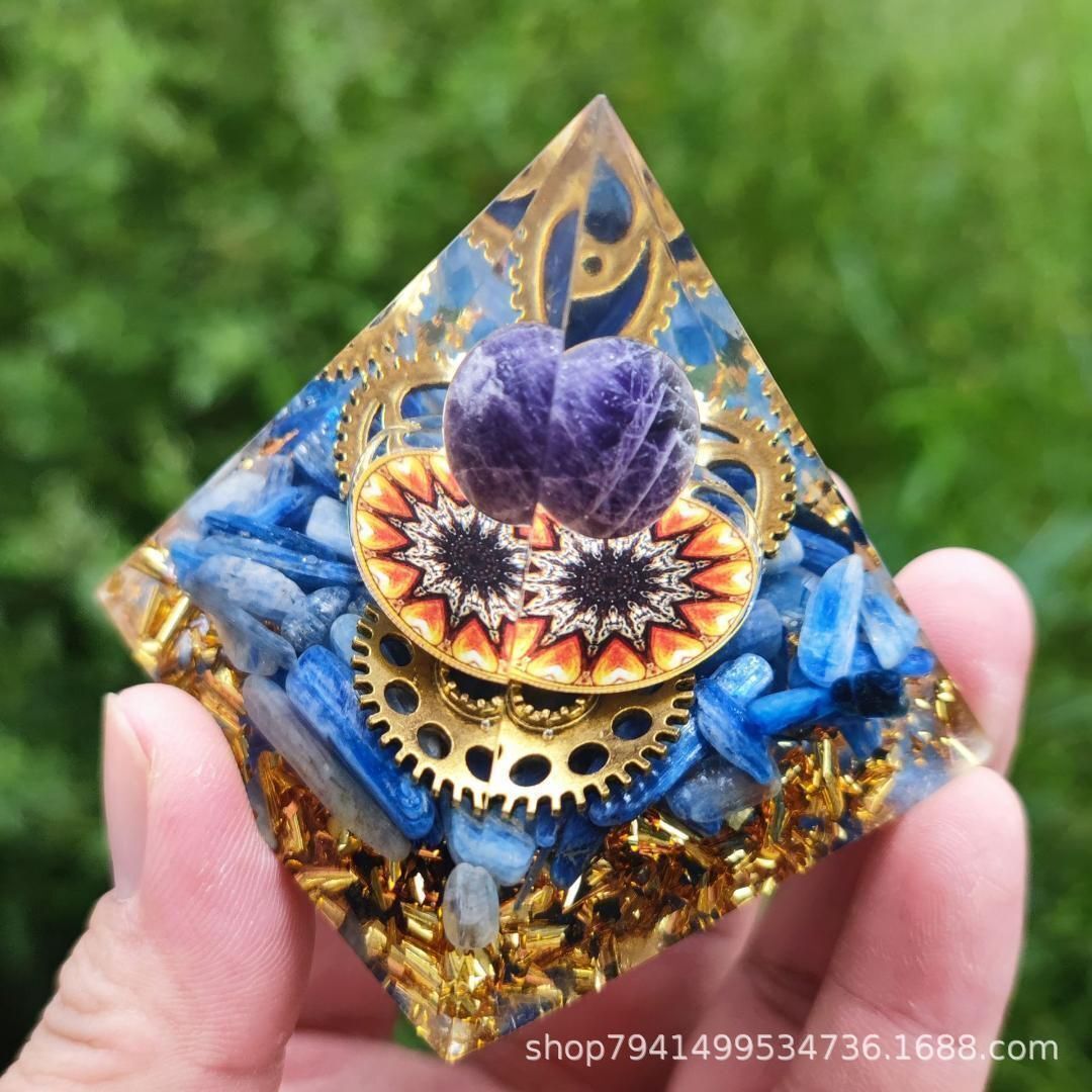 【商品名】G052 オルゴナイト ピラミッド型 アメジスト カイヤナイト 置物 インテリア 浄化