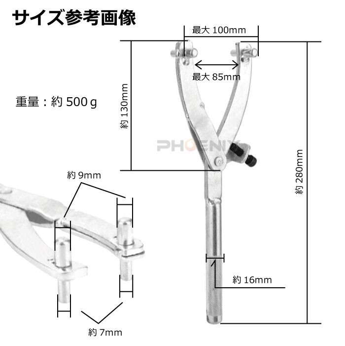 ●フライホイールやクラッチ、プーリーなどの空回り止めに使用する特殊工具です。