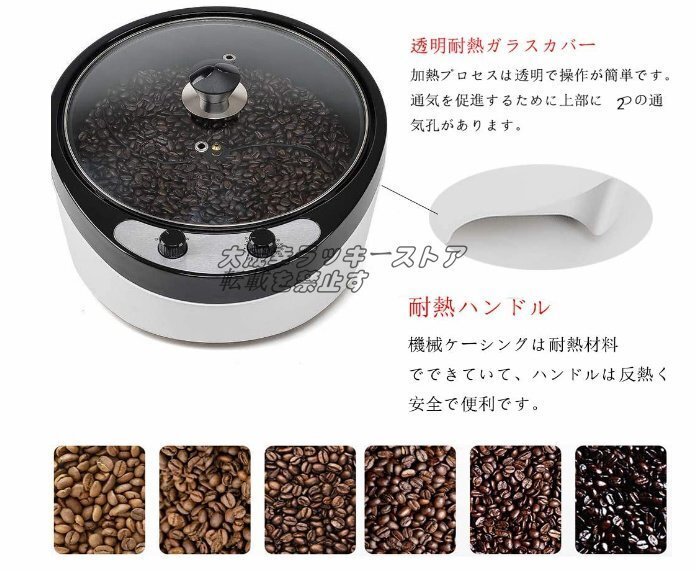焙煎機 コーヒーロースター 電動 珈琲焙煎機 自動攪拌 ホームロースター ポップコーン 豆/ひまわりの種/珈琲/コーヒー生豆 焙煎器 家庭用