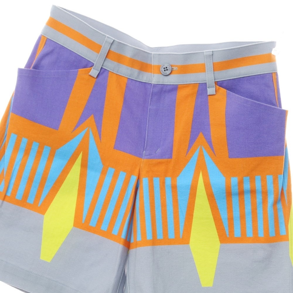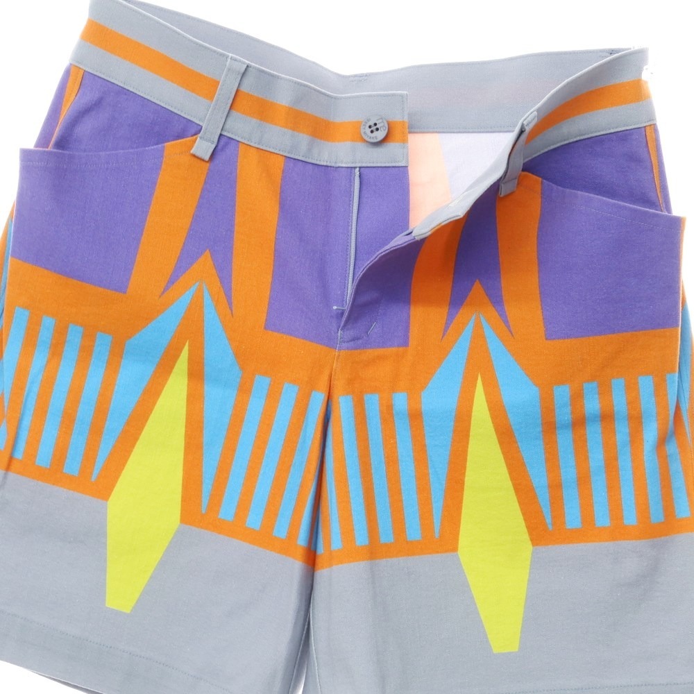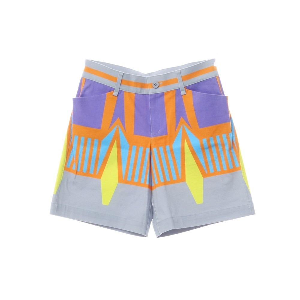 【中古】ミー イッセイミヤケ me ISSEY MIYAKE デニム プリント ショートパンツ グレーxオレンジ系【サイズ表記なし(M位)】