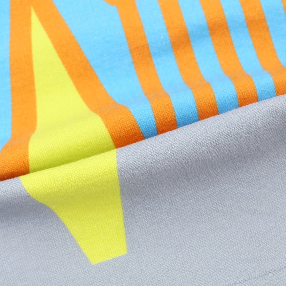 ドライな雰囲気もあるストレッチデニム系素材を用いたショートパンツです。グレーの地に鮮やかなプリントを乗せたデザイン。すとんとしたワイド目のシルエットになりまして、存在感のあるパンツになっています。