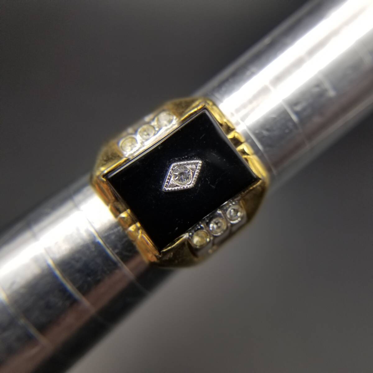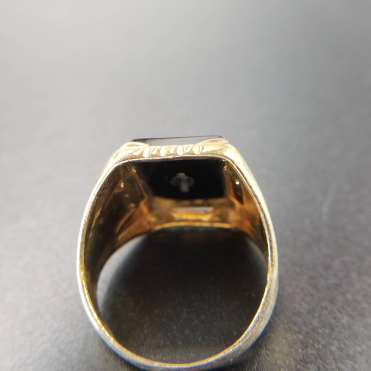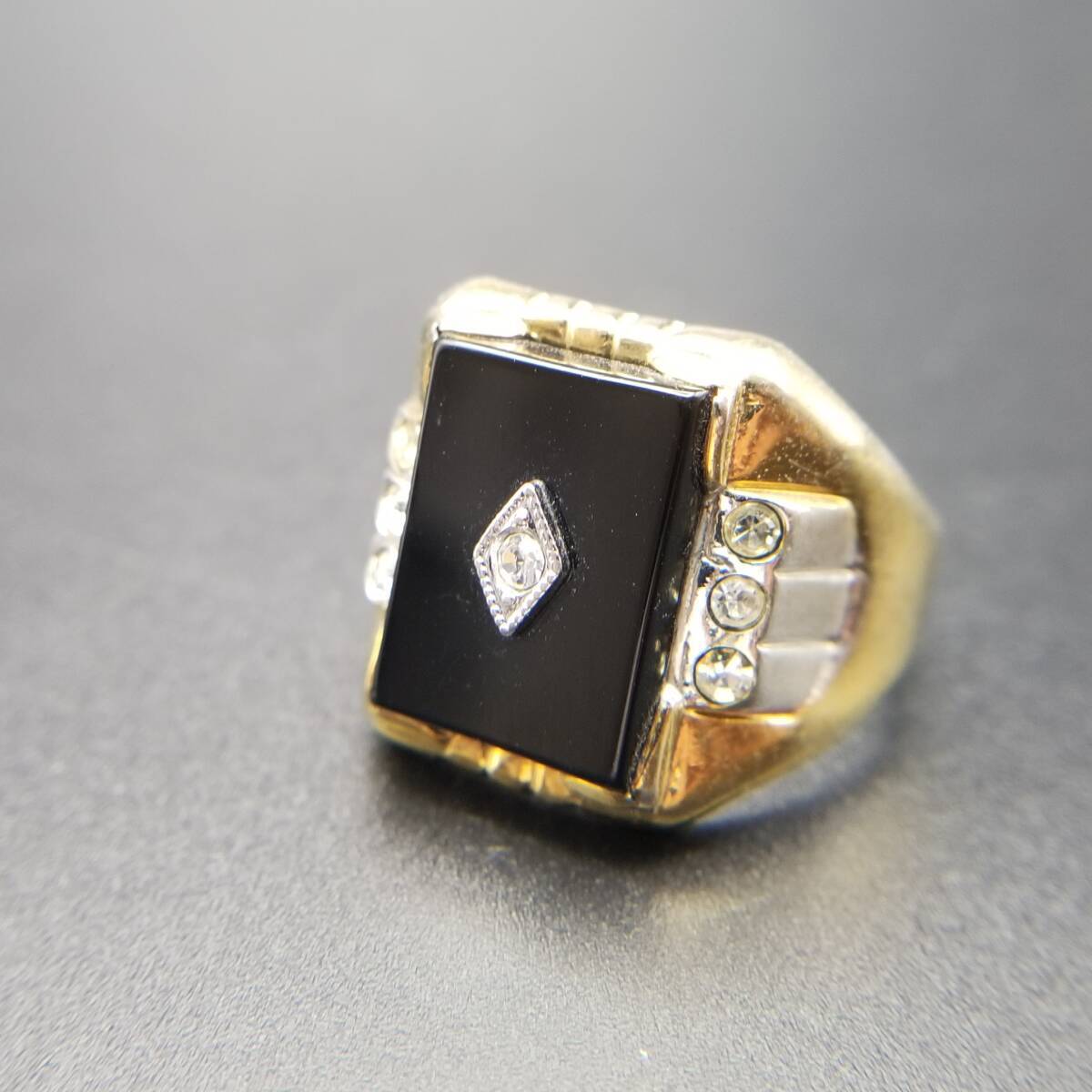 ブラックオニキス スクエア インレイ ストーン クラシカル エレガント 高級感 シグネット ヴィンテージ リング 指輪 レトロ Y18-K