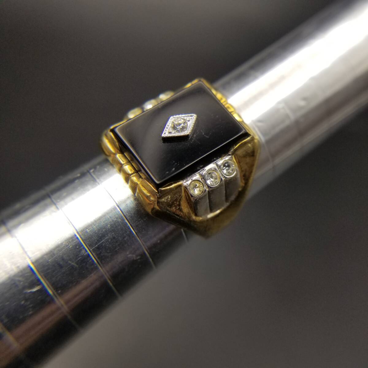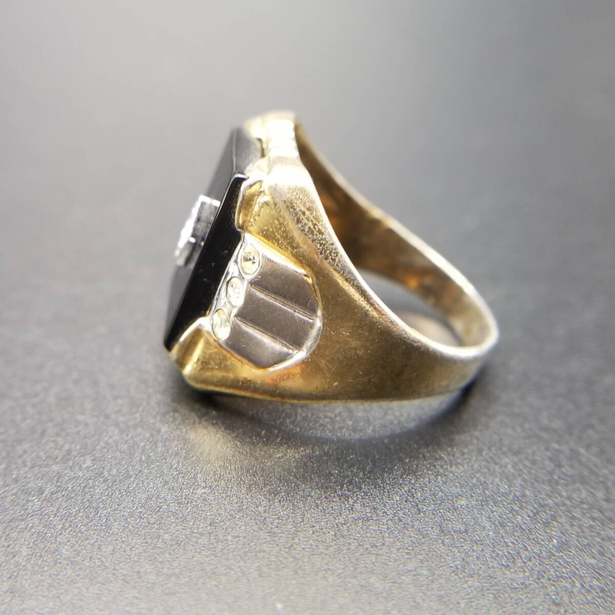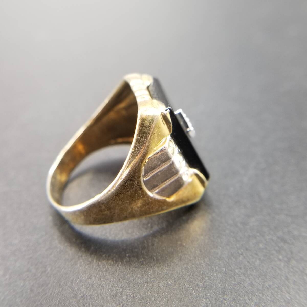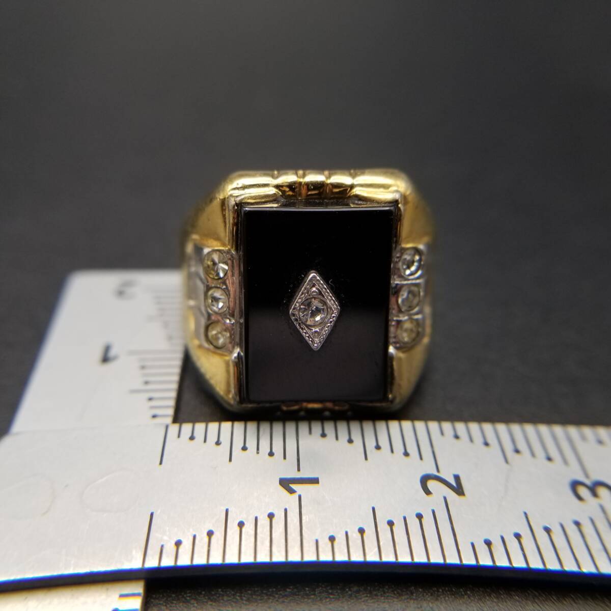 ブラックオニキス スクエア インレイ ストーン クラシカル エレガント 高級感 シグネット ヴィンテージ リング 指輪 レトロ Y18-K