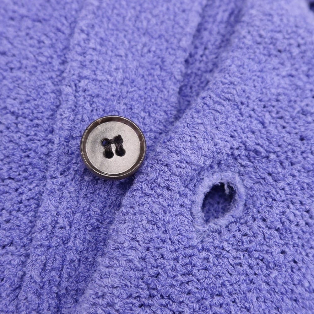 ドライタッチで立体的なコットンナイロンニット地を使用した、2023年春夏の長袖ポロニットです。パイル地のように柔らかくドライタッチなニット生地を使用し、スマルトブルー系の色合いが魅力のアイテムです。