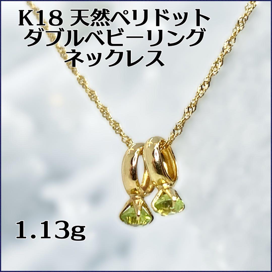 天然ペリドットのダブルベビーリングネックレスです。細目のチェーン に存在感抜群のデザインです。