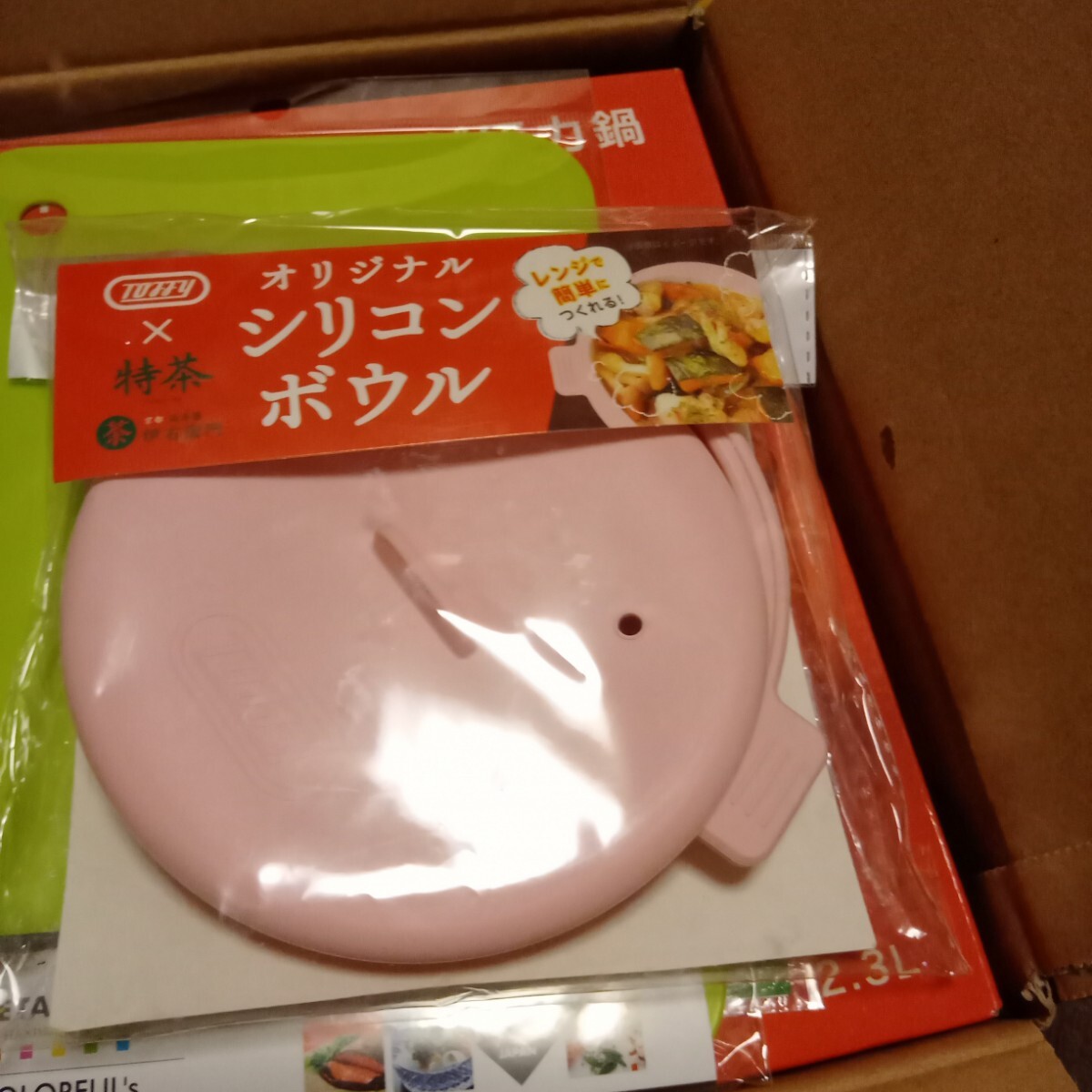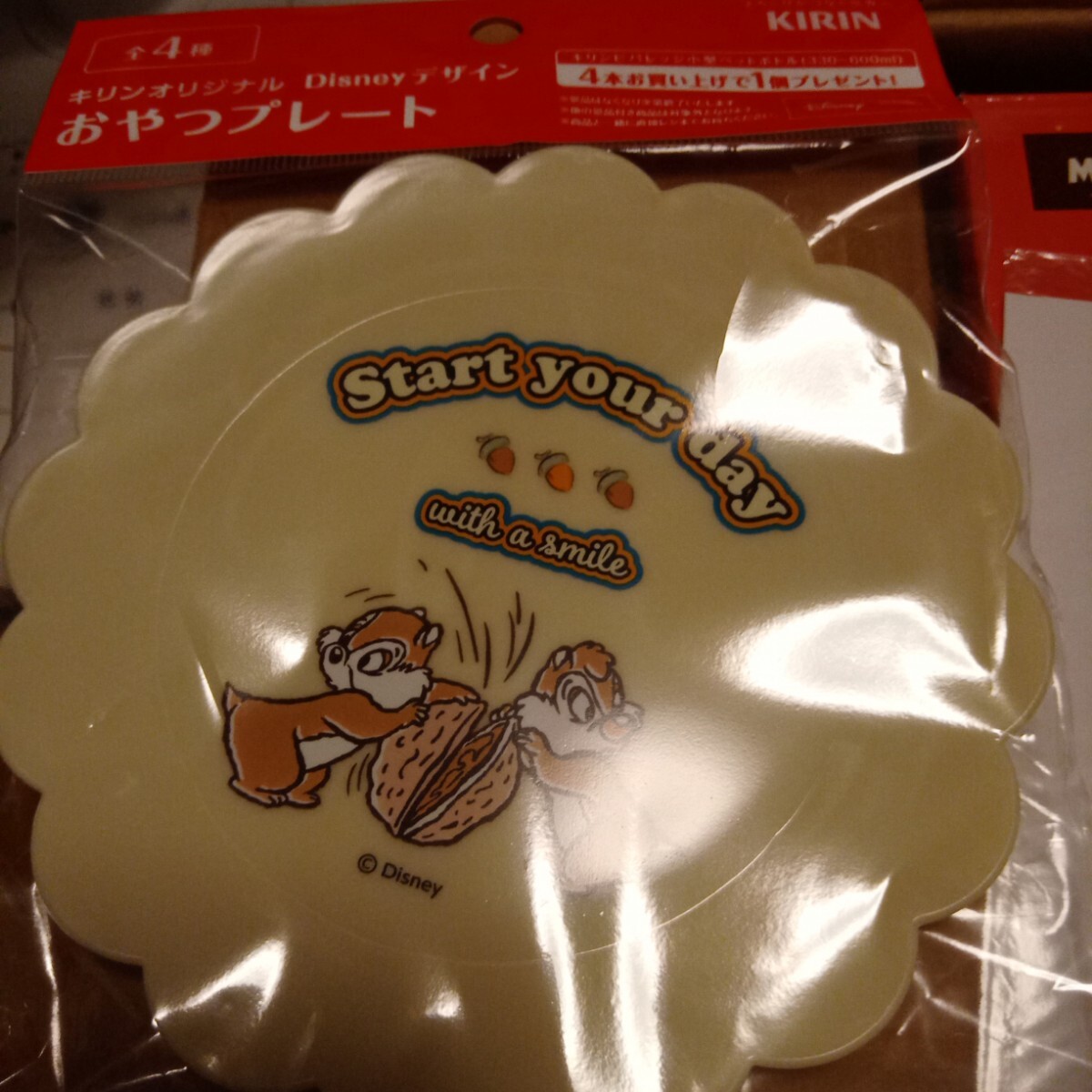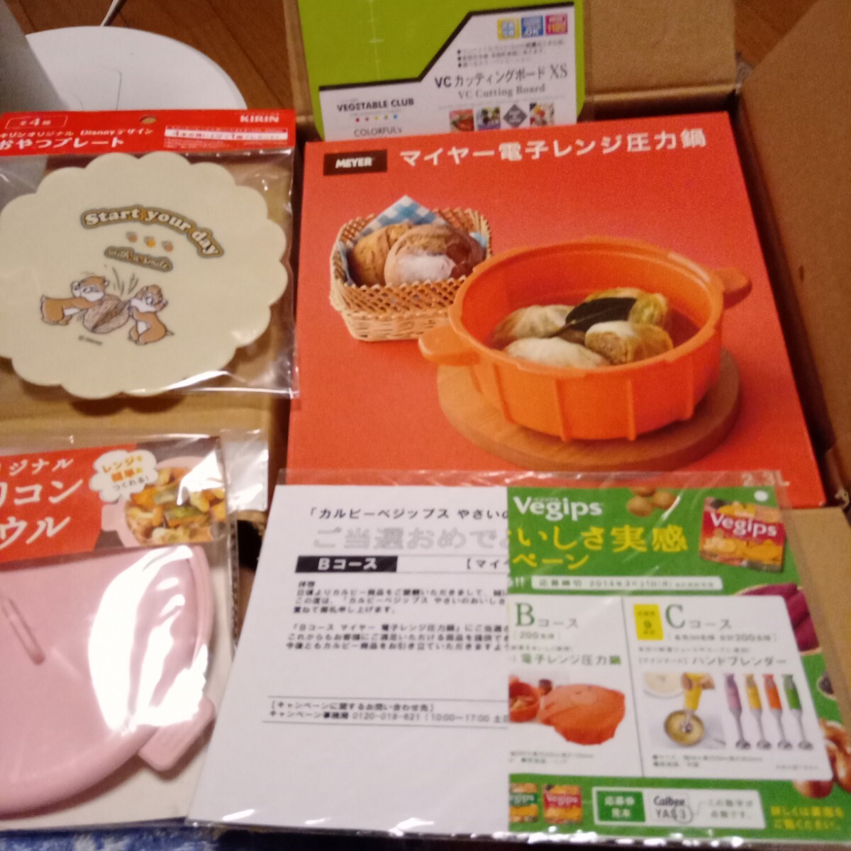 又、箱の隙間には新品未使用のノベルティのカッティングボード&シリコンボウル&チップ&デールのプレートを同梱しています。