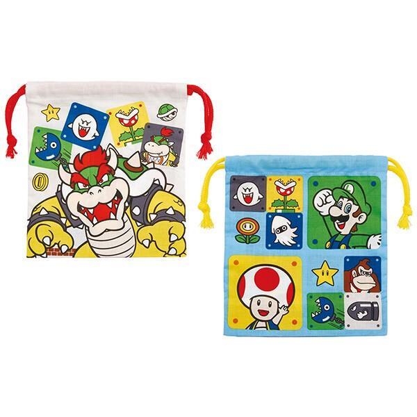 ●イラストの可愛いマチ付きの巾着袋、2枚(2柄)セット。