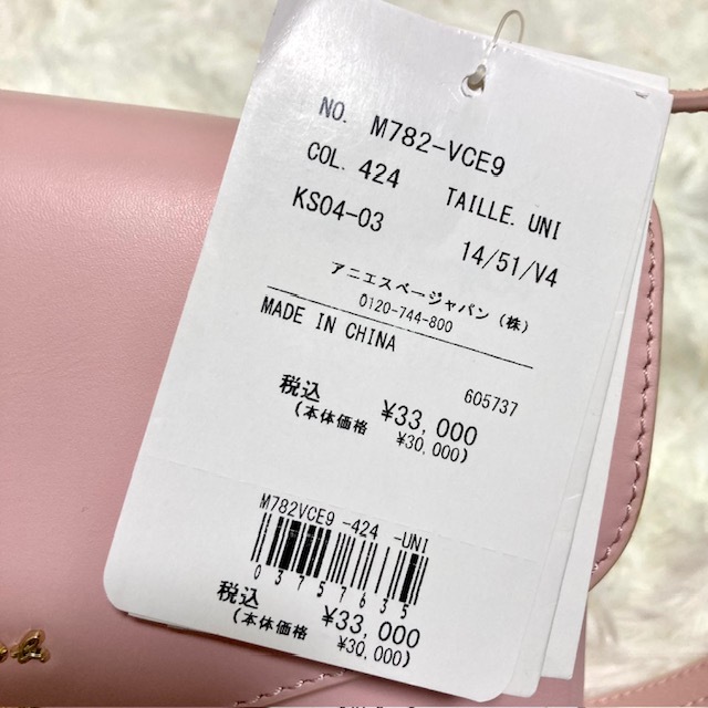 ★新品★送料無料★匿名発送★定価30,000円+税★ agns b アニエス・ベー ショルダーバッグ ピンク 牛革