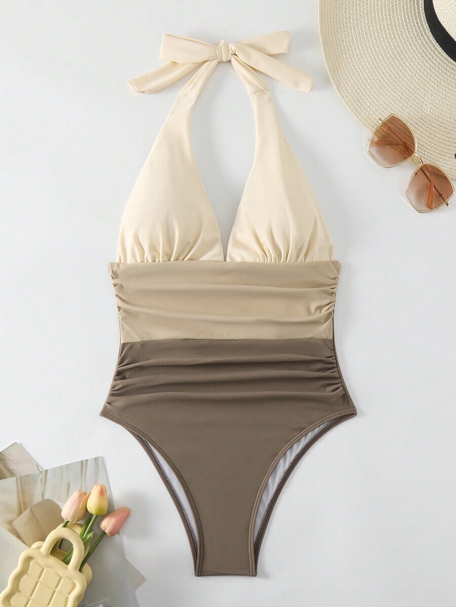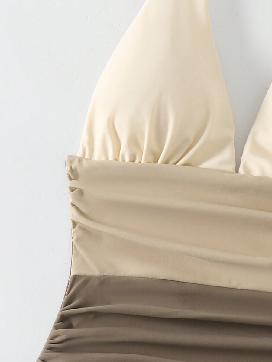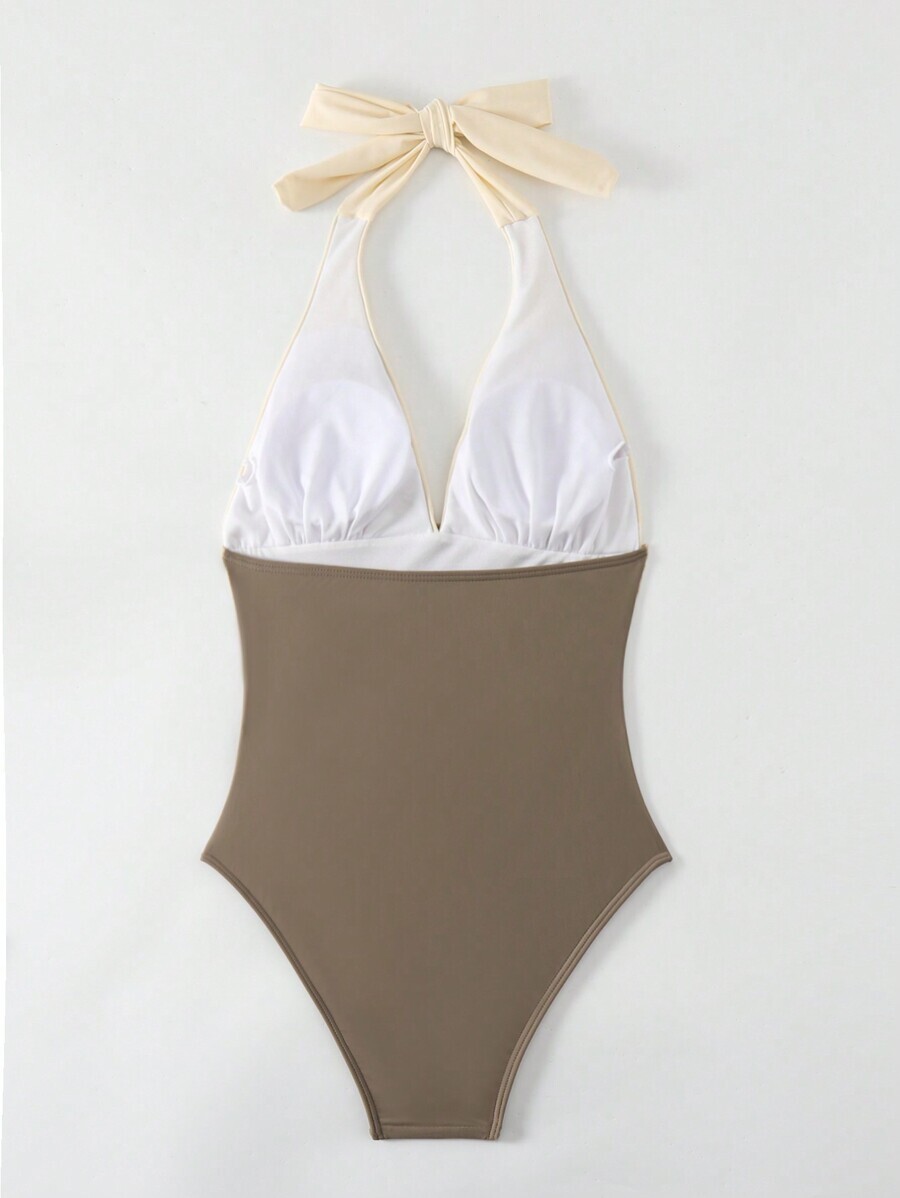 レディース 水着 ワンピース サマービーチ カラーブロックホルターワンピース水着 婚礼用