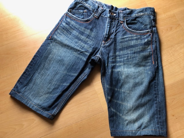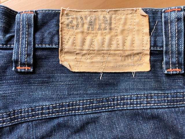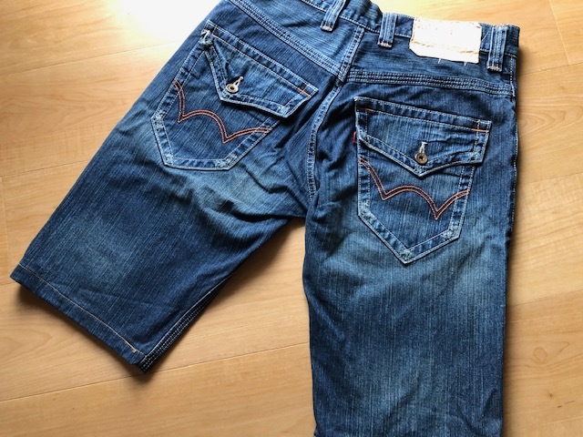良品 EDWIN エドウィン デニム ハーフパンツ ジーンズ 濃青系 薄ダメージ コットン 綿100% メンズ サイズ 30 M相当