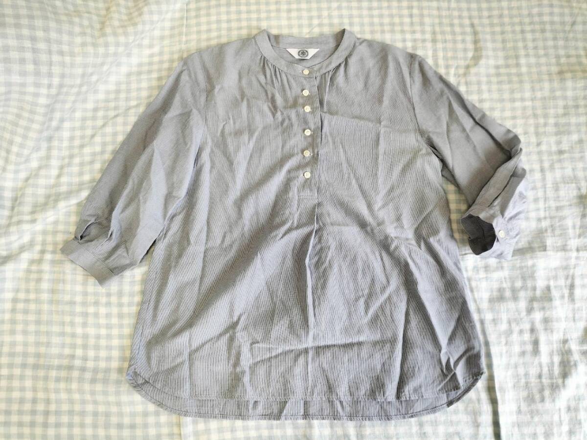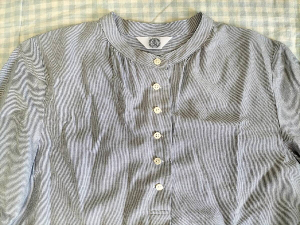 色はブルー系ストライプ 素材:綿54%アセテート23%レーヨン23% サイズP5(B75-79 T150-156) 肩幅38.5cm胸幅48cm袖丈41cm着丈(前)62cm(後ろ)65cm 他にも洋服、バッグ、靴、小物、本を出品していますので見てください。