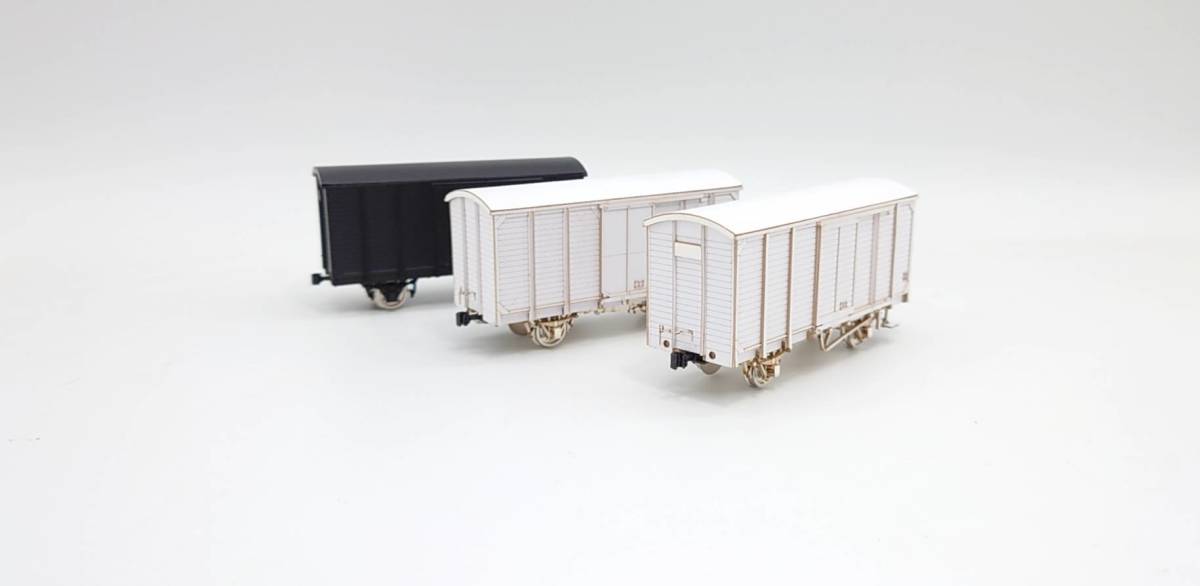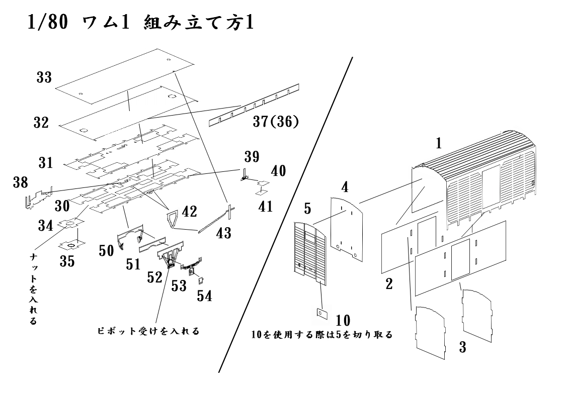 1/80のワム3500 補強なし仕様(ワム1)のレーザー切り抜き済みペーパーキットです。