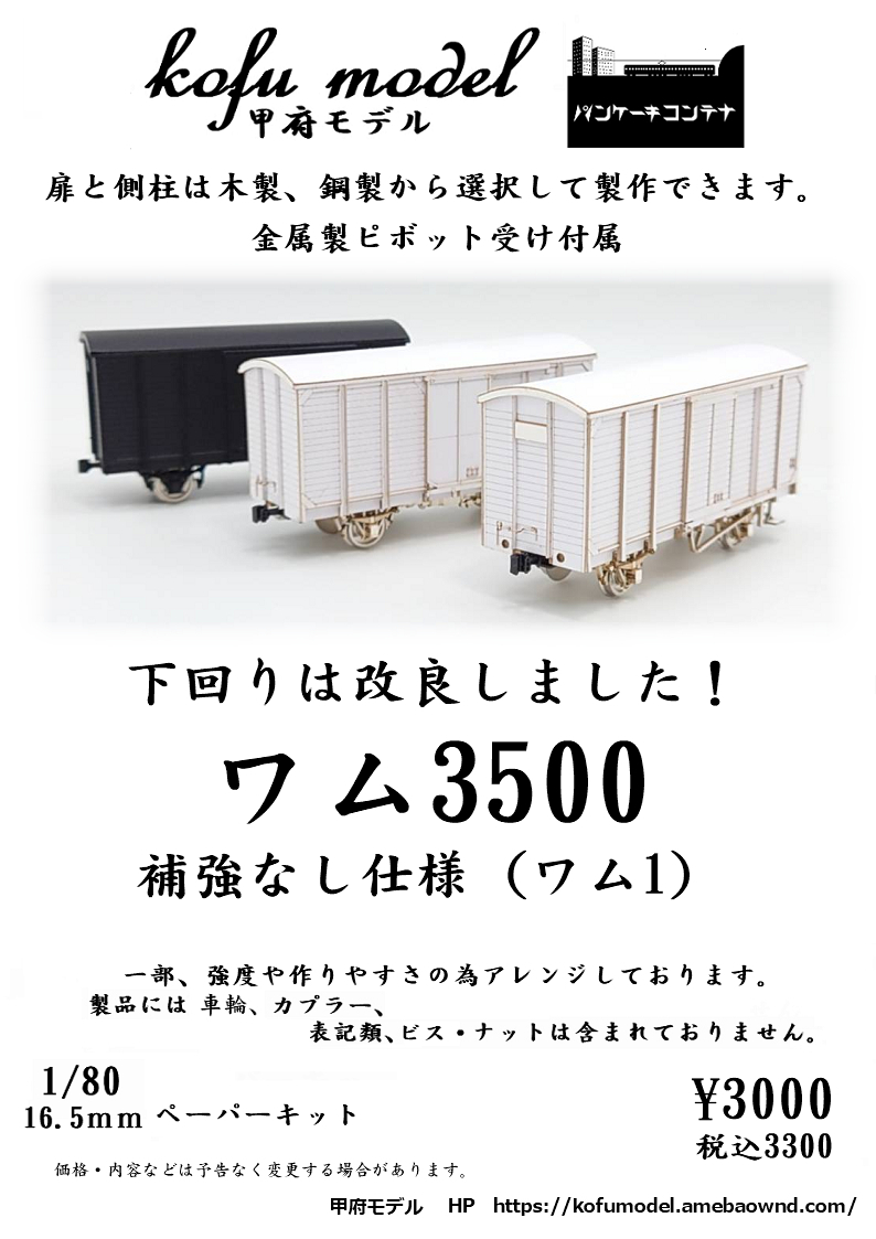 ワム3500 補強なし仕様(ワム1) 1/80 甲府モデル(パンケーキコンテナ)