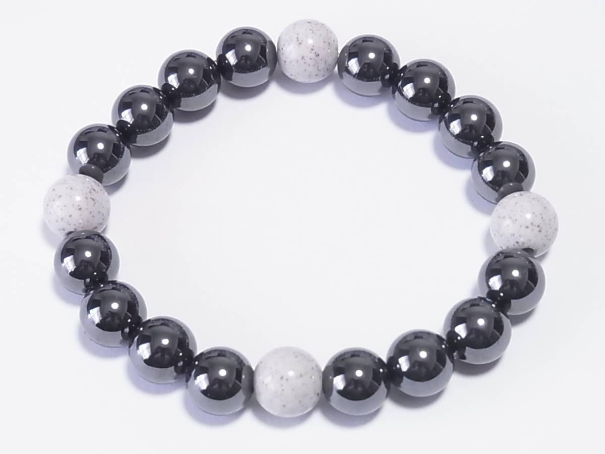 北投石と磁気ヘマタイトを使ったブレスレットです | |||
