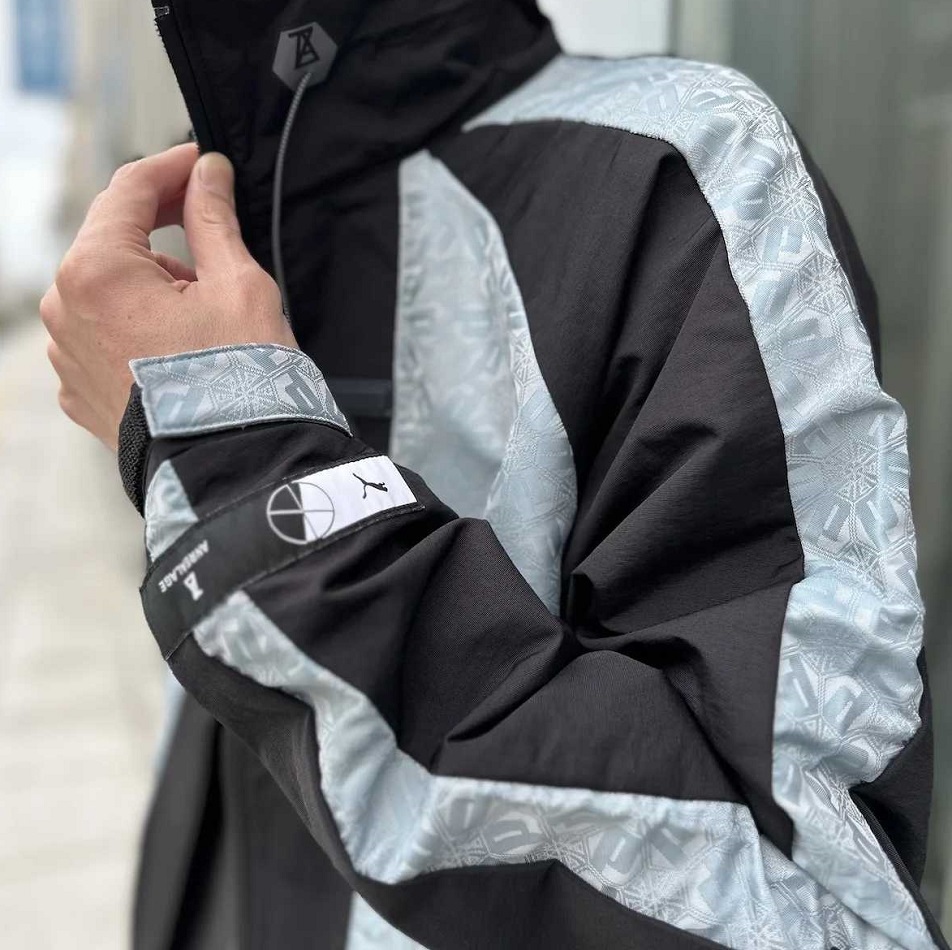 プーマの定番アイテムT7のナイロンジャケットにアンリアレイジのアイコンテキスタイルの